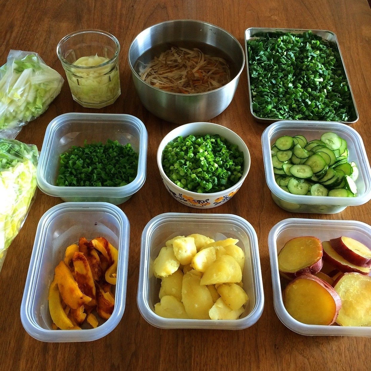 野口ゆかさんの週末のルーティンはまとめ買いと食材の下ごしらえ。野菜は切っておくだけでも調理がかなり楽に。また買い物は1時間、下ごしらえは30分と時間を制限。家事をし始めると「あれもこれも」となりやすいですが、優先順位と時間を決めれば効率よくできますよ。