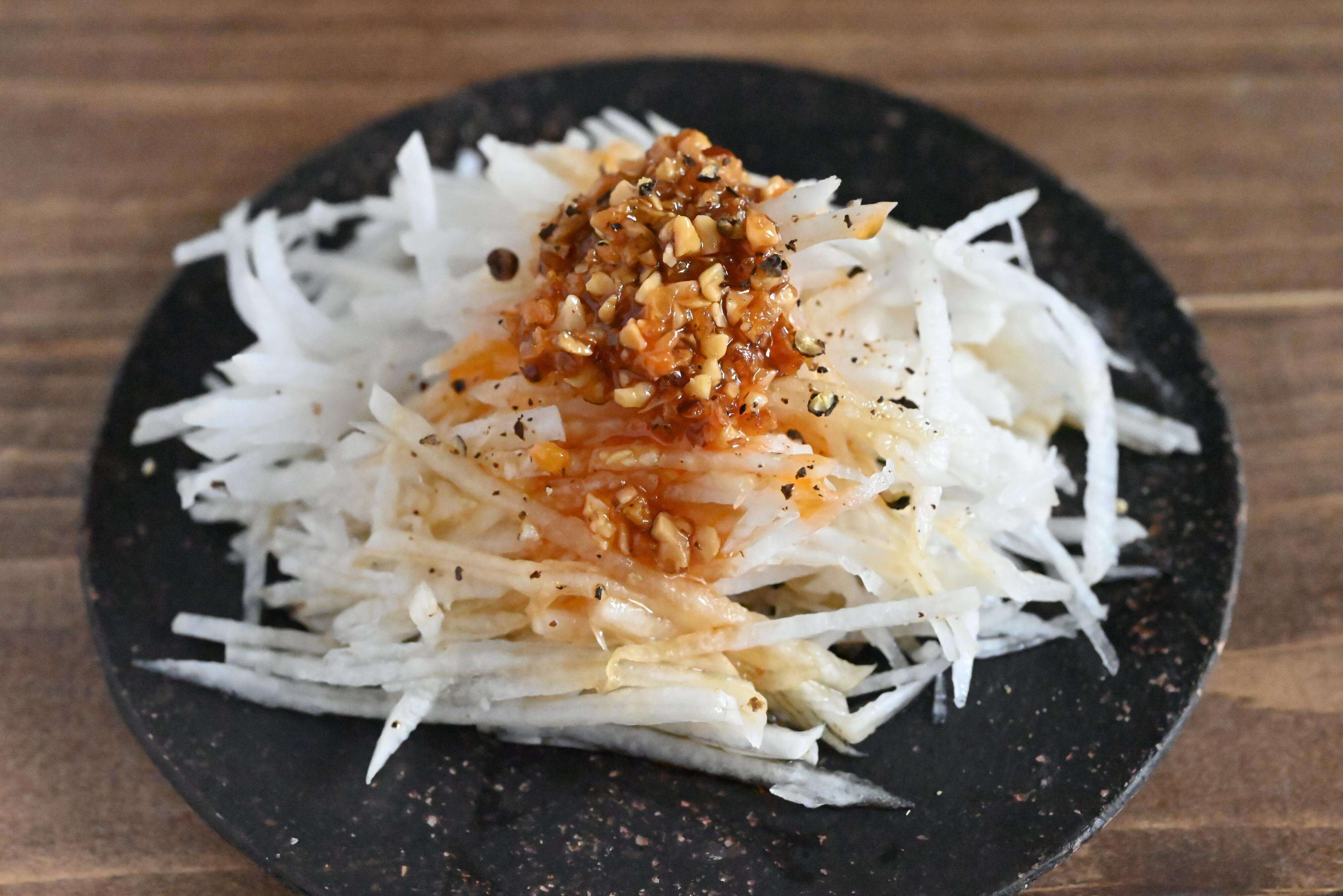 大根のシャキシャキとした食感とえび油のザクザクとした食感を楽しみましょう!
