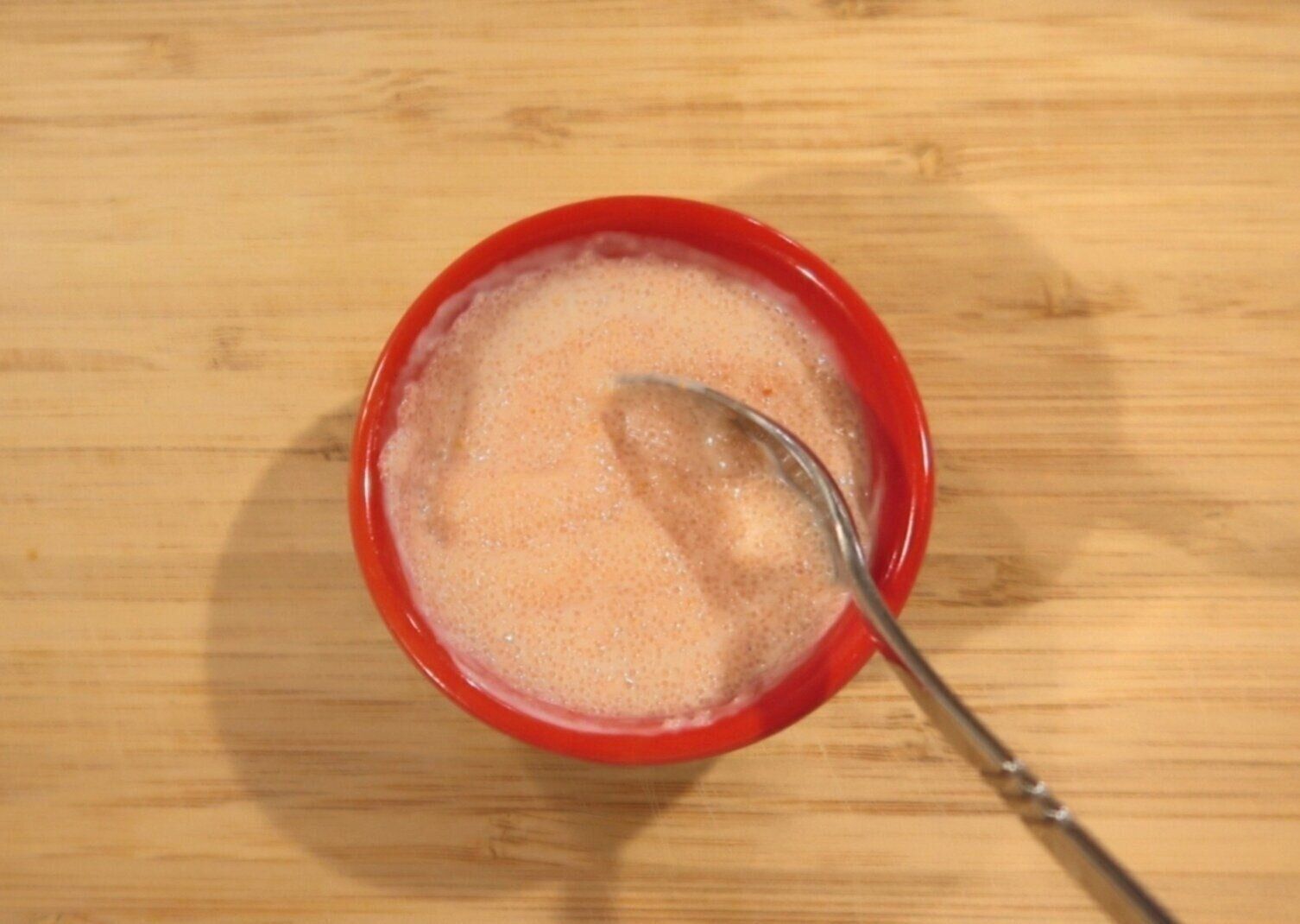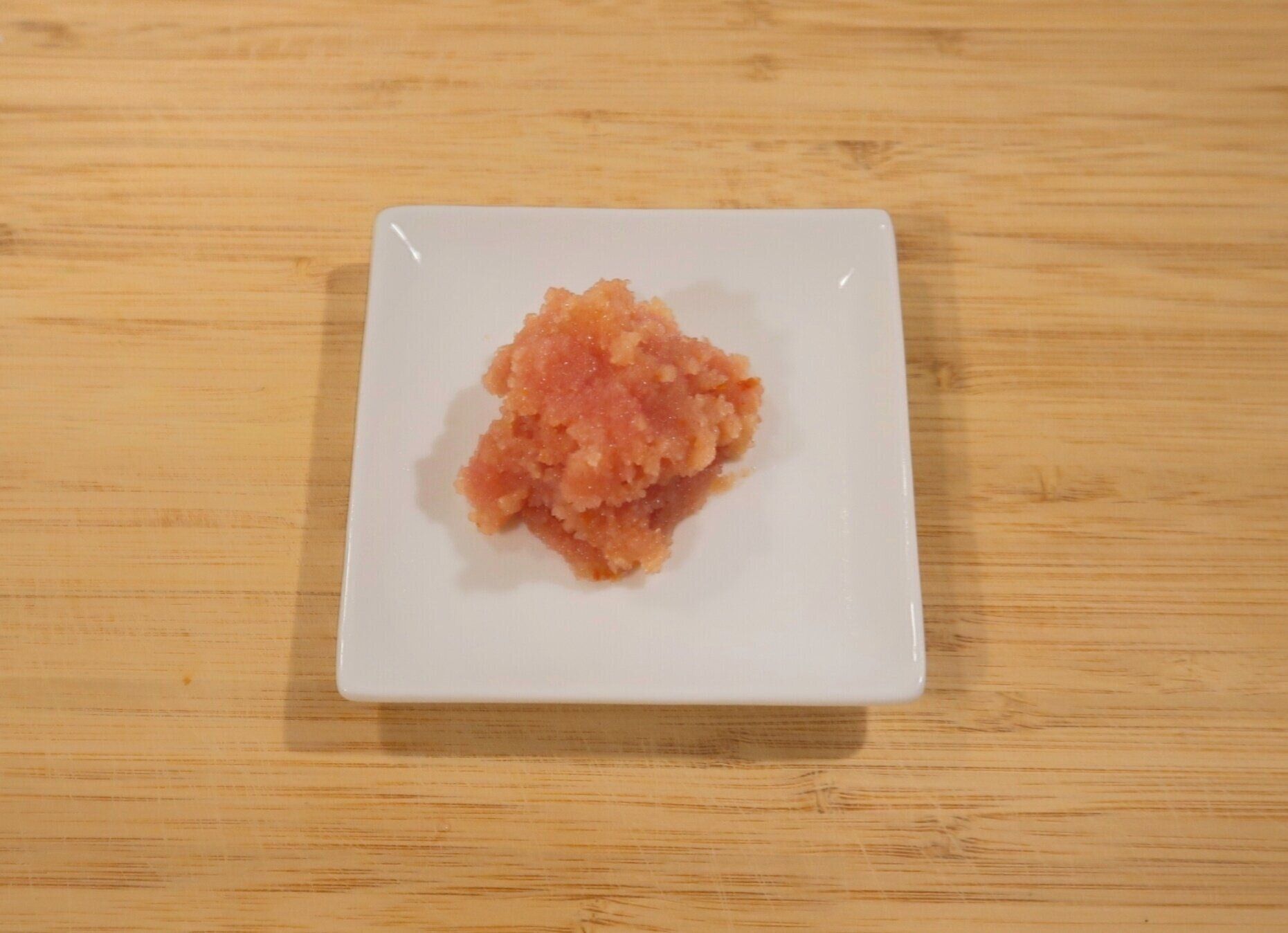明太子の中身と、マヨネーズ(大さじ1)をよく混ぜ合わせます。
