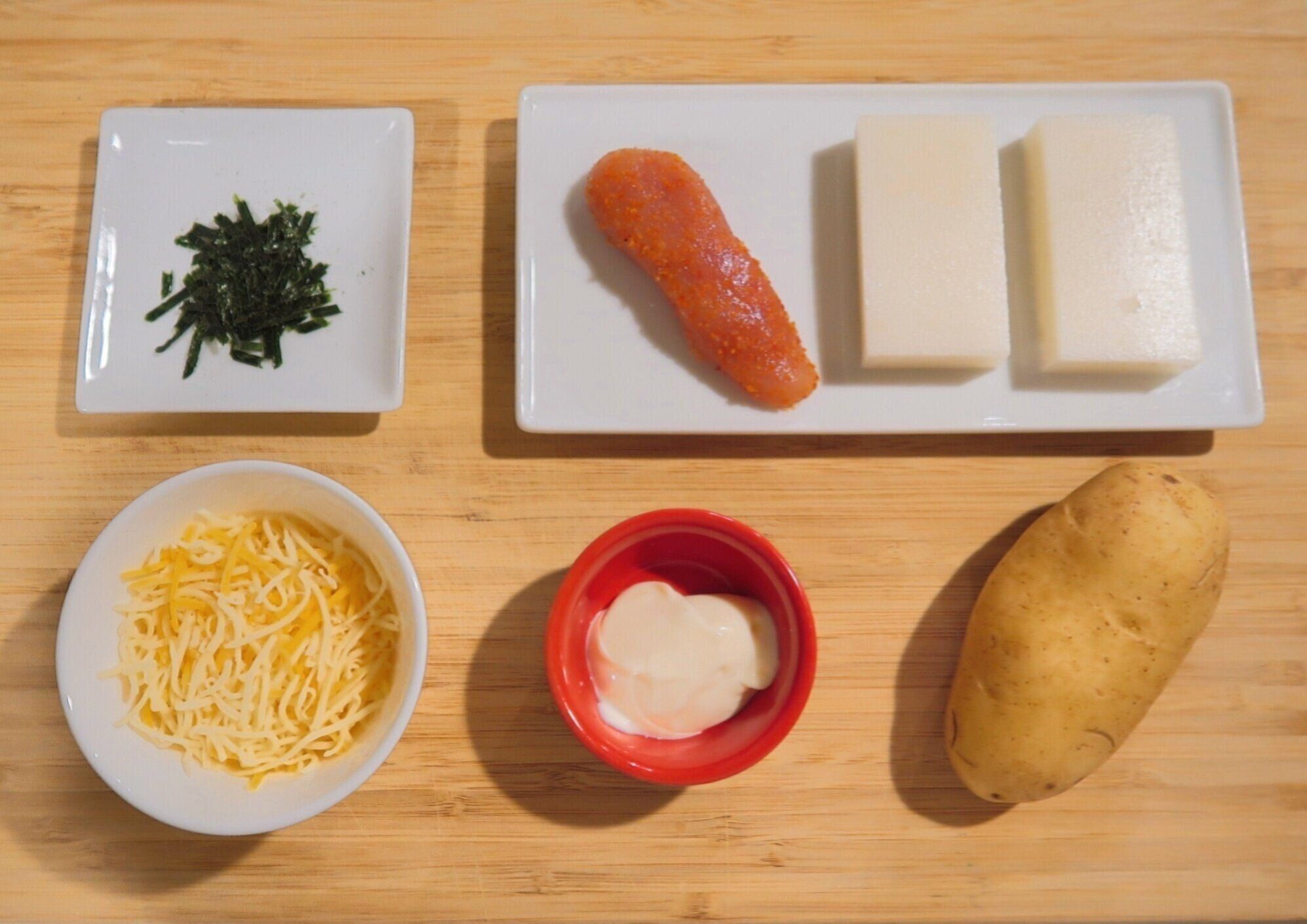 火をいっさい使わずにつくれる「お餅とじゃがいもの明太チーズ焼き」。