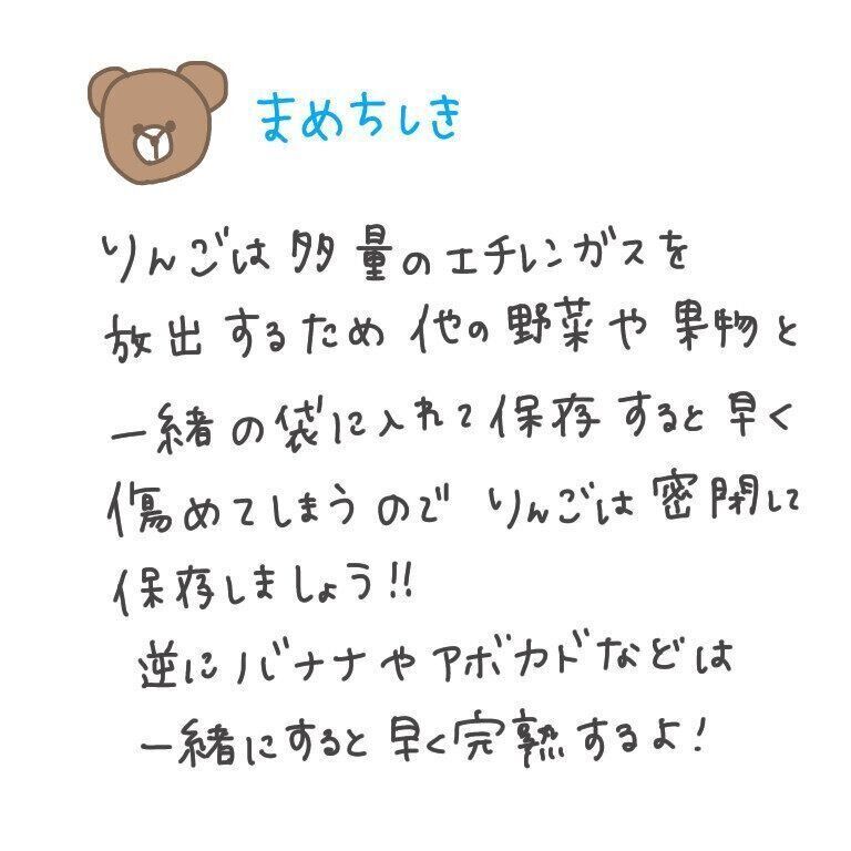 また食べやすい大きさに切ったりんごは保存袋にいれ、冷蔵庫で約1ヶ月保存することができます。