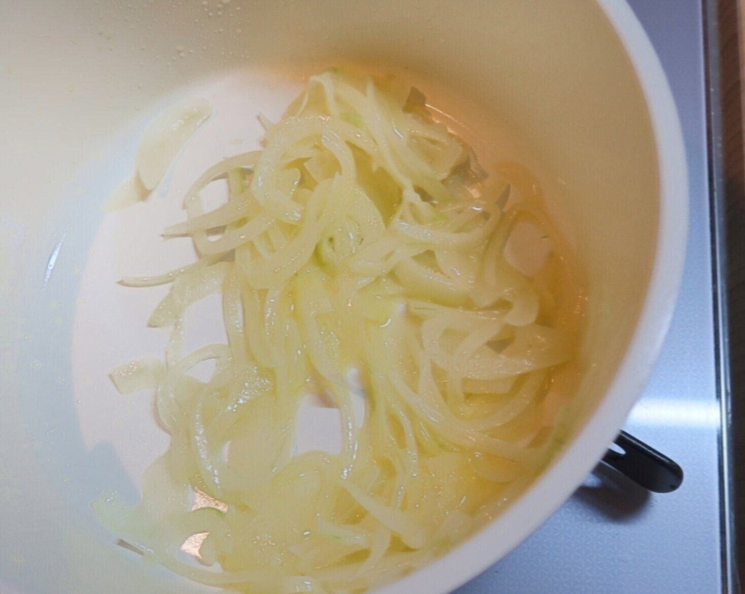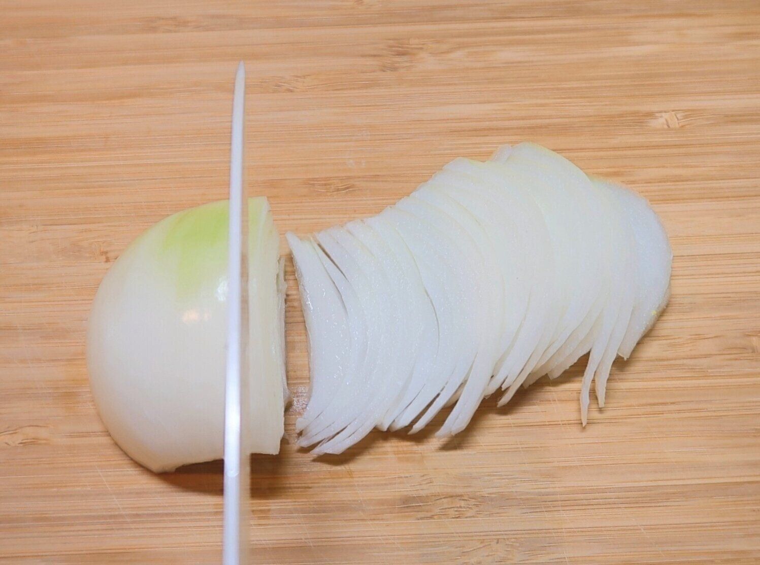 玉ねぎはうす切りにします。