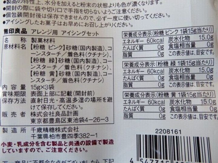 アイシングは何が原料になっているのか気になって、裏を見てみました。