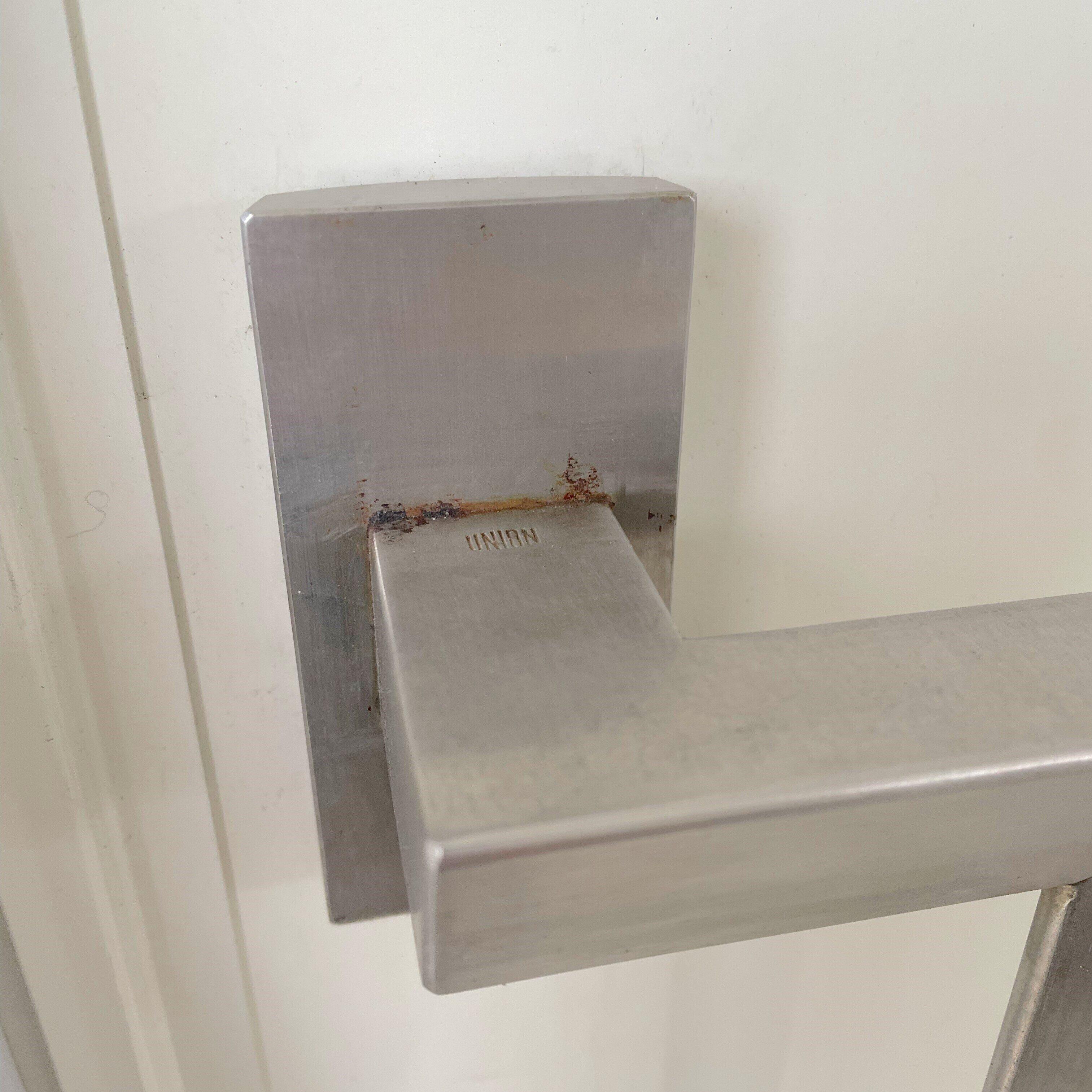 消しゴムのグレー部分では落ちなかったドアノブ根本のサビをブラック部分でこすってみました!