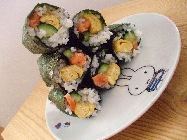 よっちゃんさんが作った恵方巻は、2歳のお子さんと苦手な食べ物が多いご主人でも食べられるように具を工夫。サーモンのマリネ・きゅうりの梅和え・だし巻き卵だそうです!