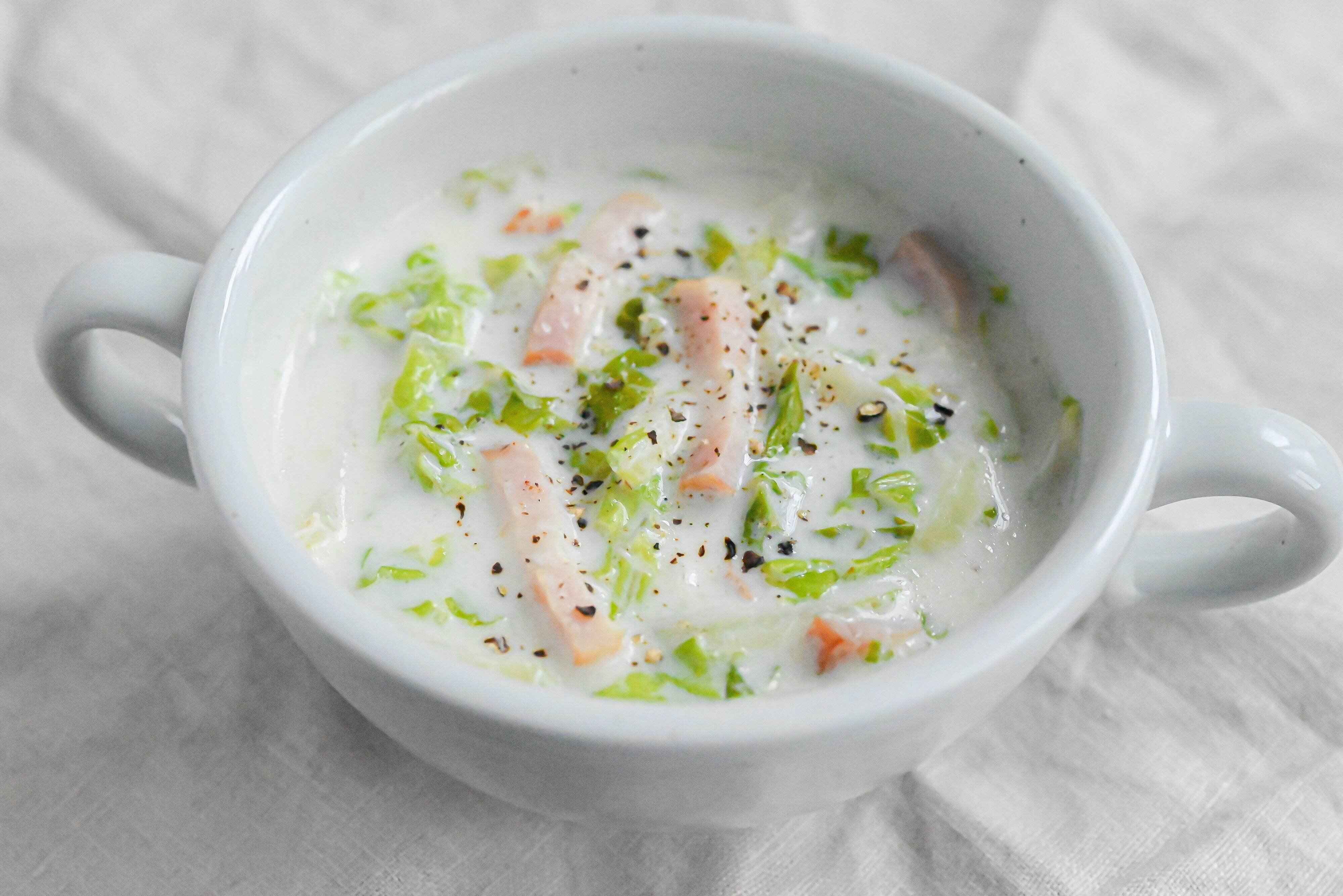 やさしい味わい♪白菜とベーコンのミルクスープ