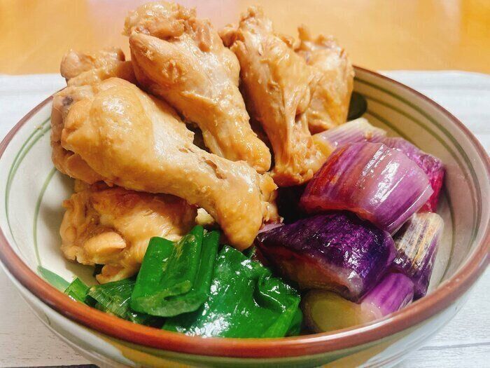 ビールの効果で、柔らかくホロホロおいしいですよ。ぜひ、お試しください。今回は、焼いた赤ねぎをトッピングしました。