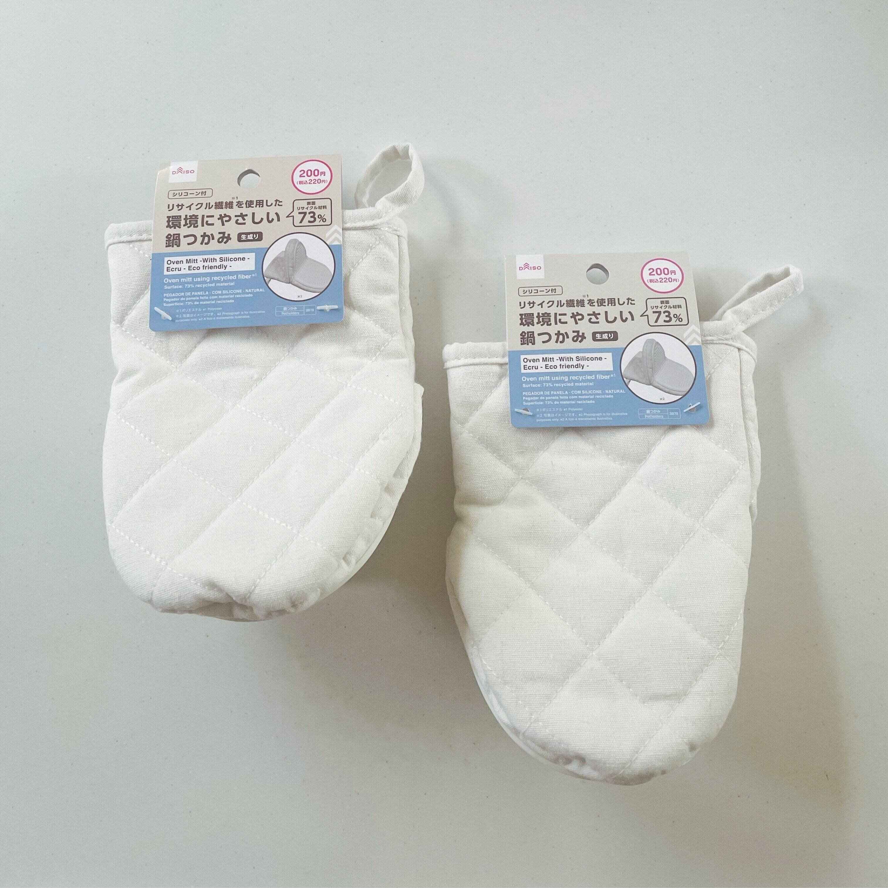 環境に配慮された商品は他にもたくさん出ていますが、まさか鍋つかみの生地までリサイクル素材とはさすがダイソーです。