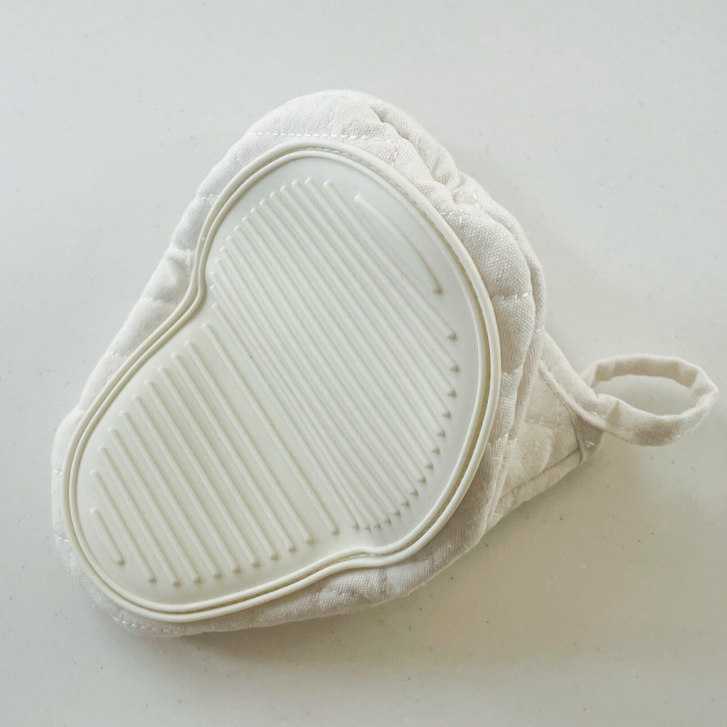 熱々のグラタンは体を温めてくれるので家族みんな大好きなのですが、調理の工程でオーブンを使用する際、熱々の天板をオーブンレンジから取り出す時にキルティングの鍋つかみでは耐熱が心もとなかったため、生地が厚めの鍋つかみがないか探していました。