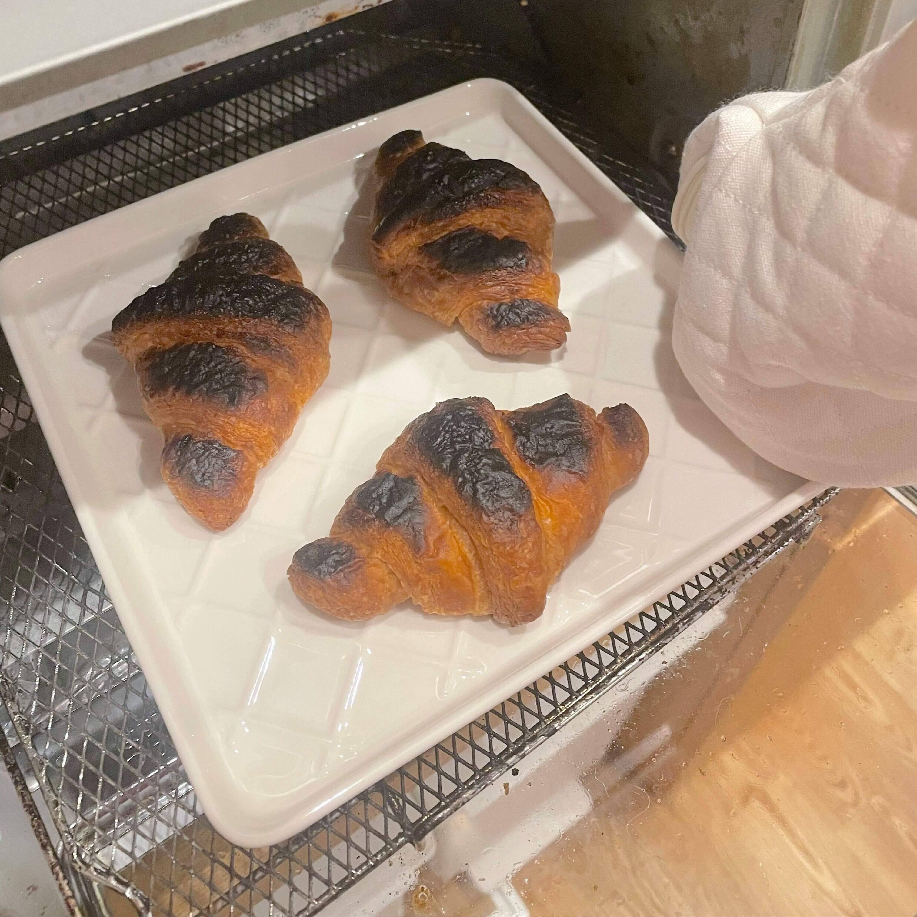 買い置きのクロワッサンがあったので、購入したトレーを使って温めてみます。