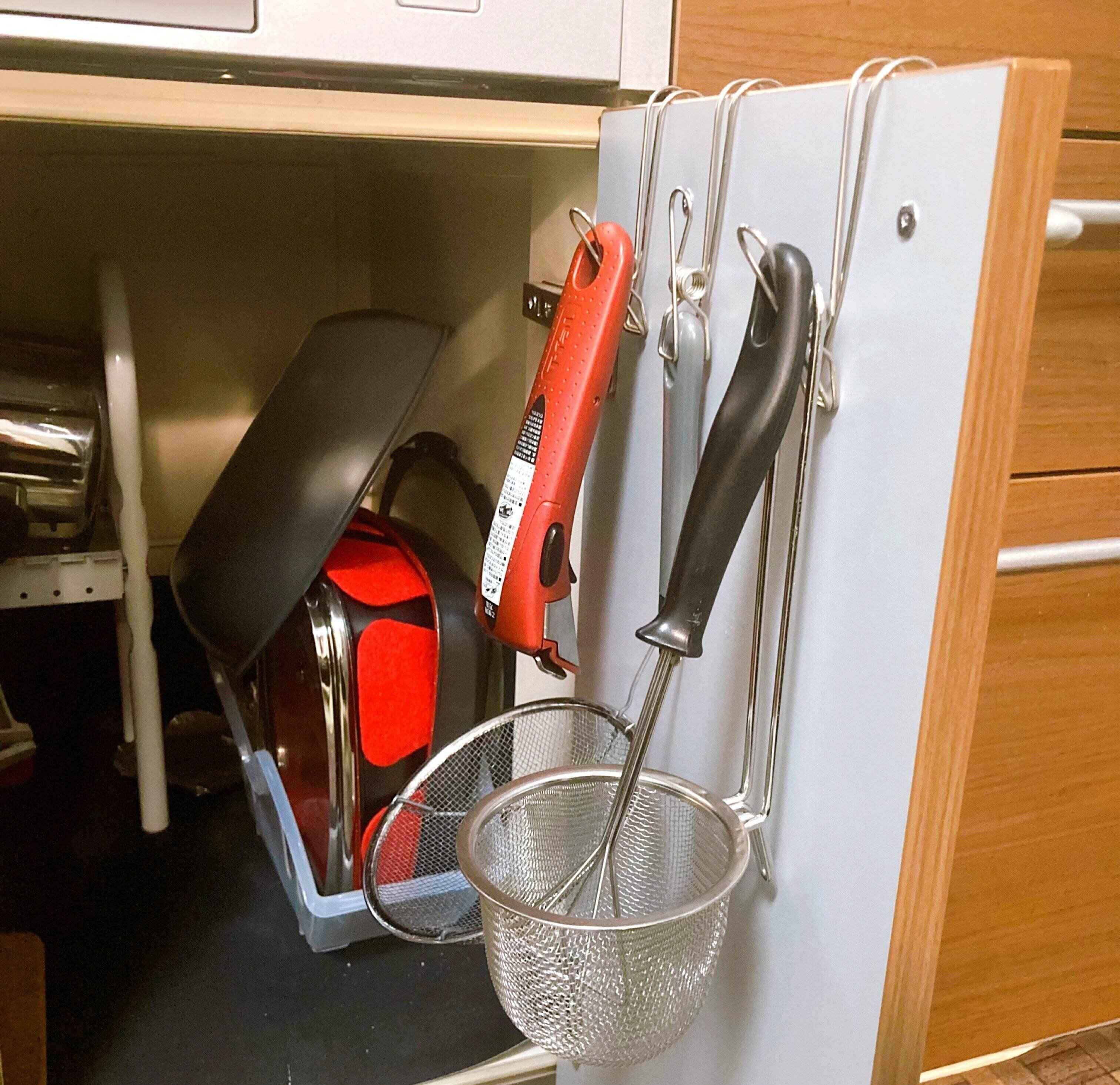 扉にひっかけることで今まで空間になっていた場所が使えて、取り出しやすさを手に入れました!