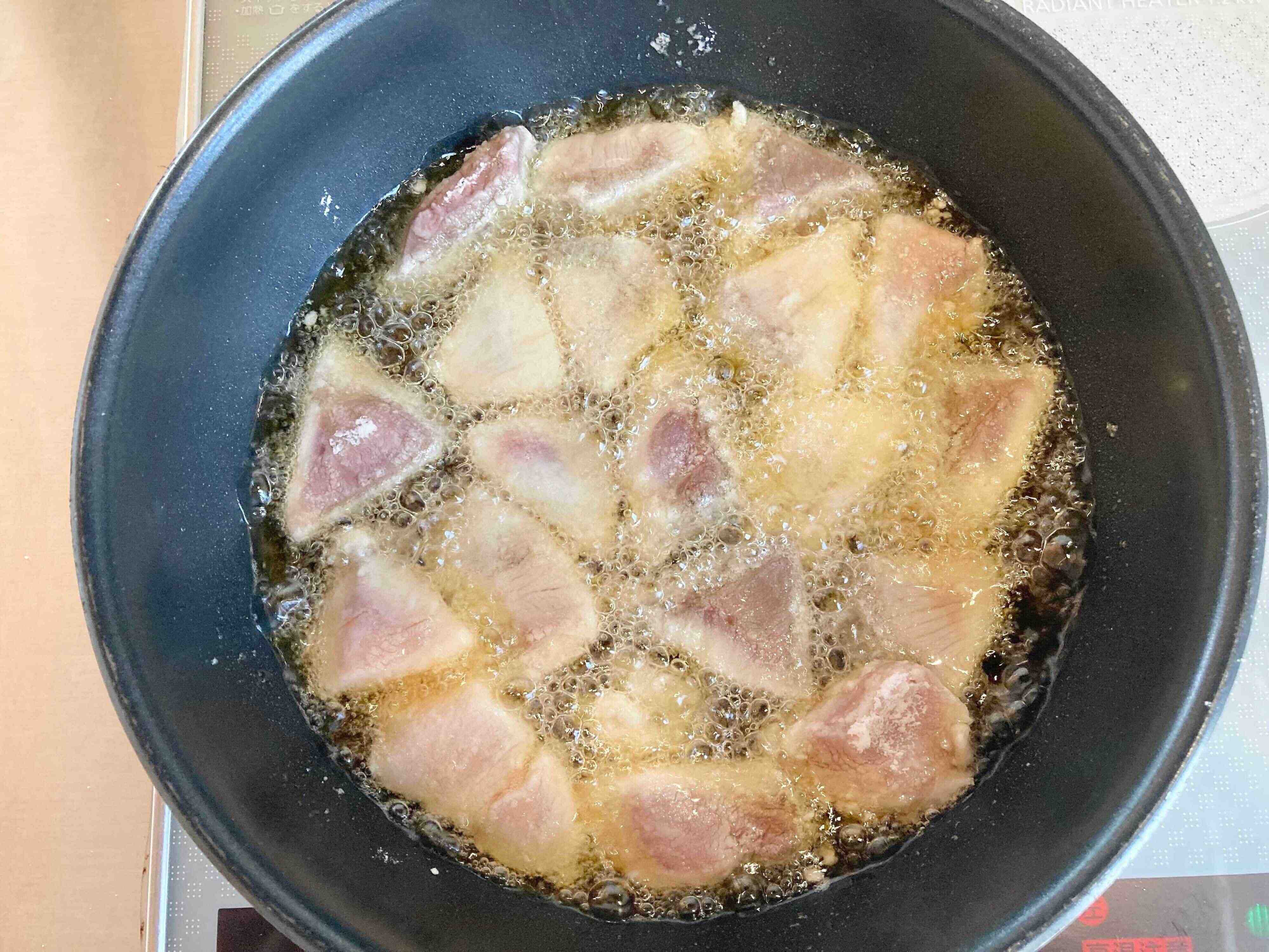 5.180℃の油でカラッとするまで揚げる。(6分前後)