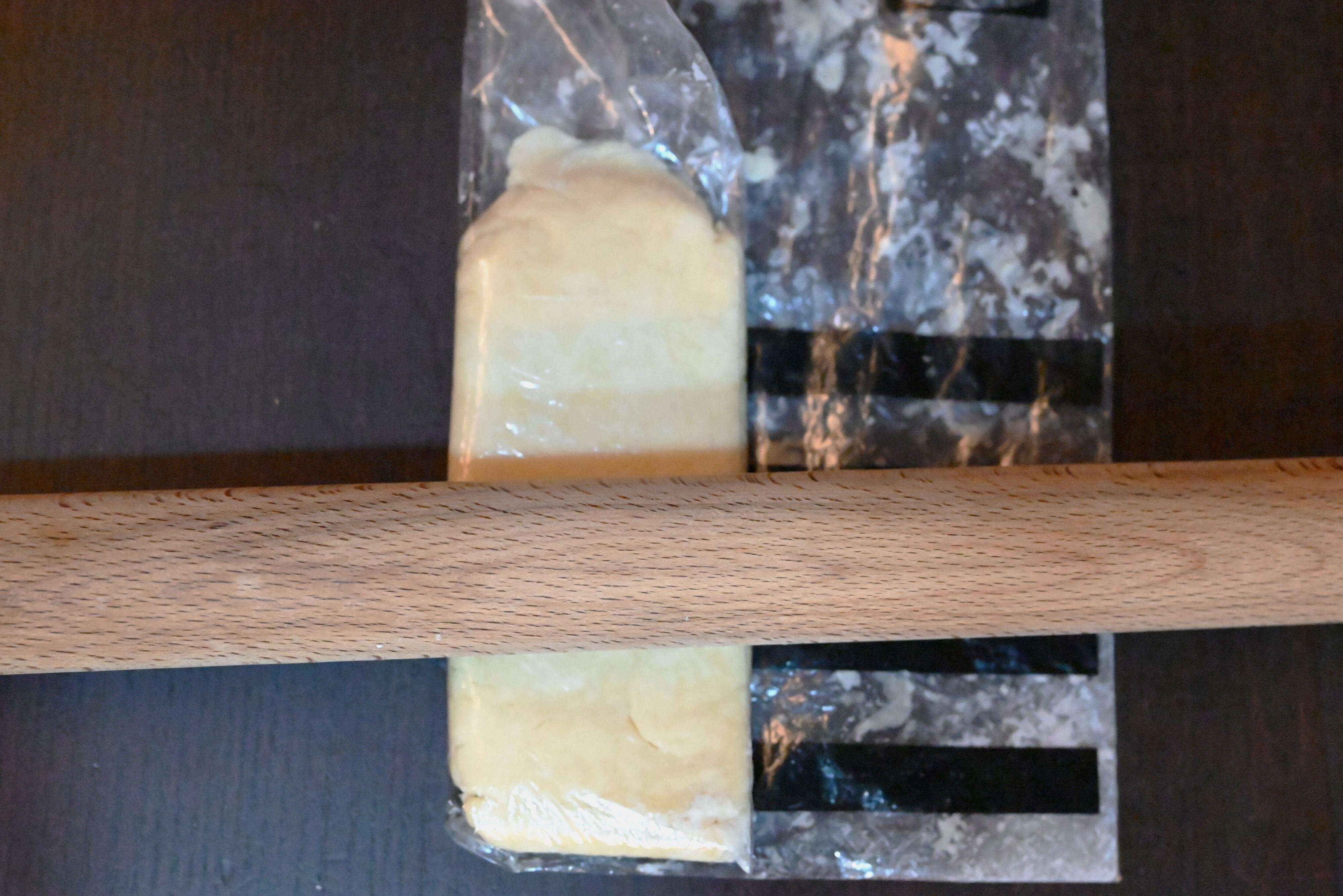 食品用ポリ袋を使うことで厚みを均一に伸ばすことができ、