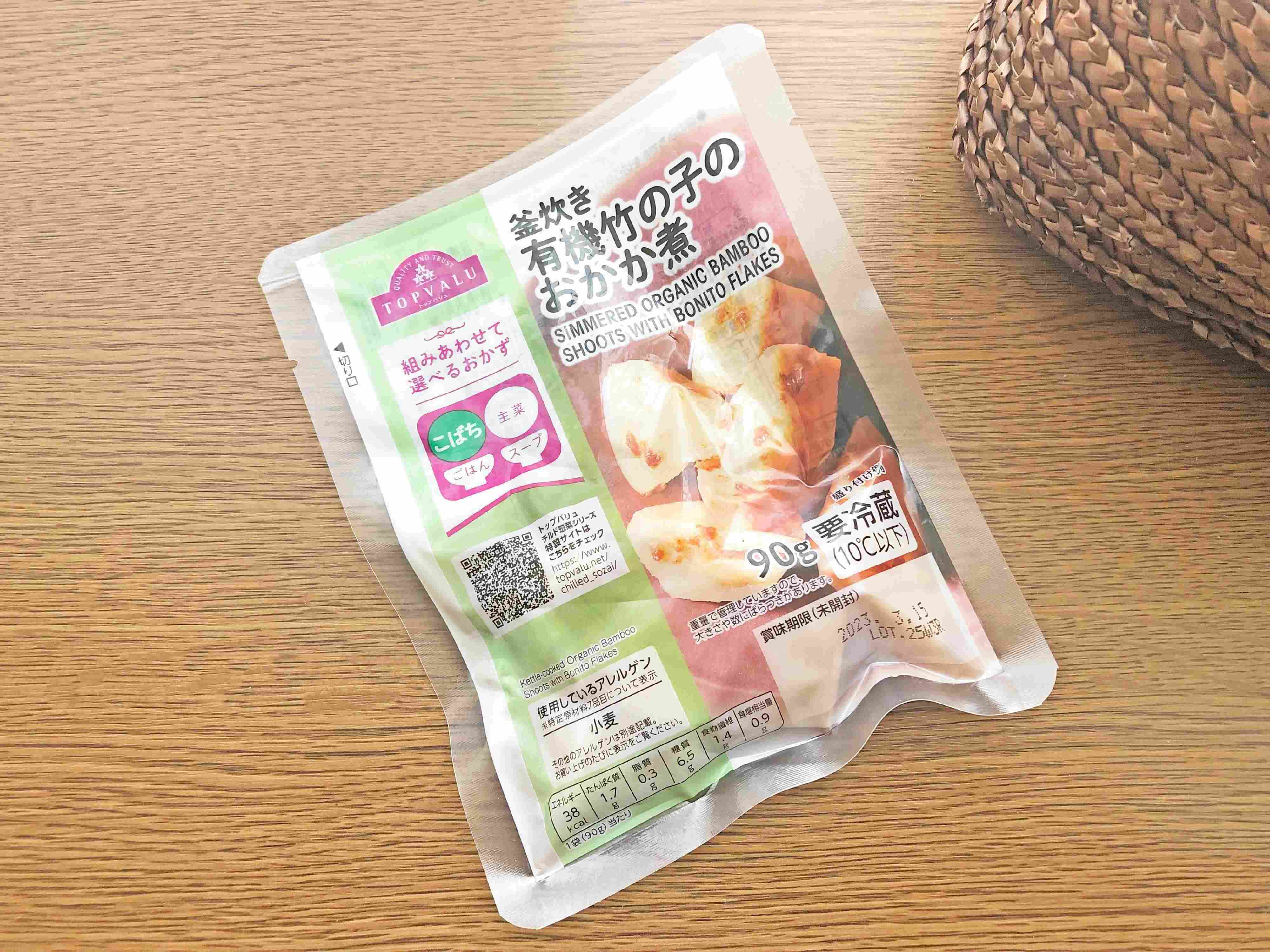 2つ目は、「トップバリュ 釜炊き有機竹の子のおかか煮」。