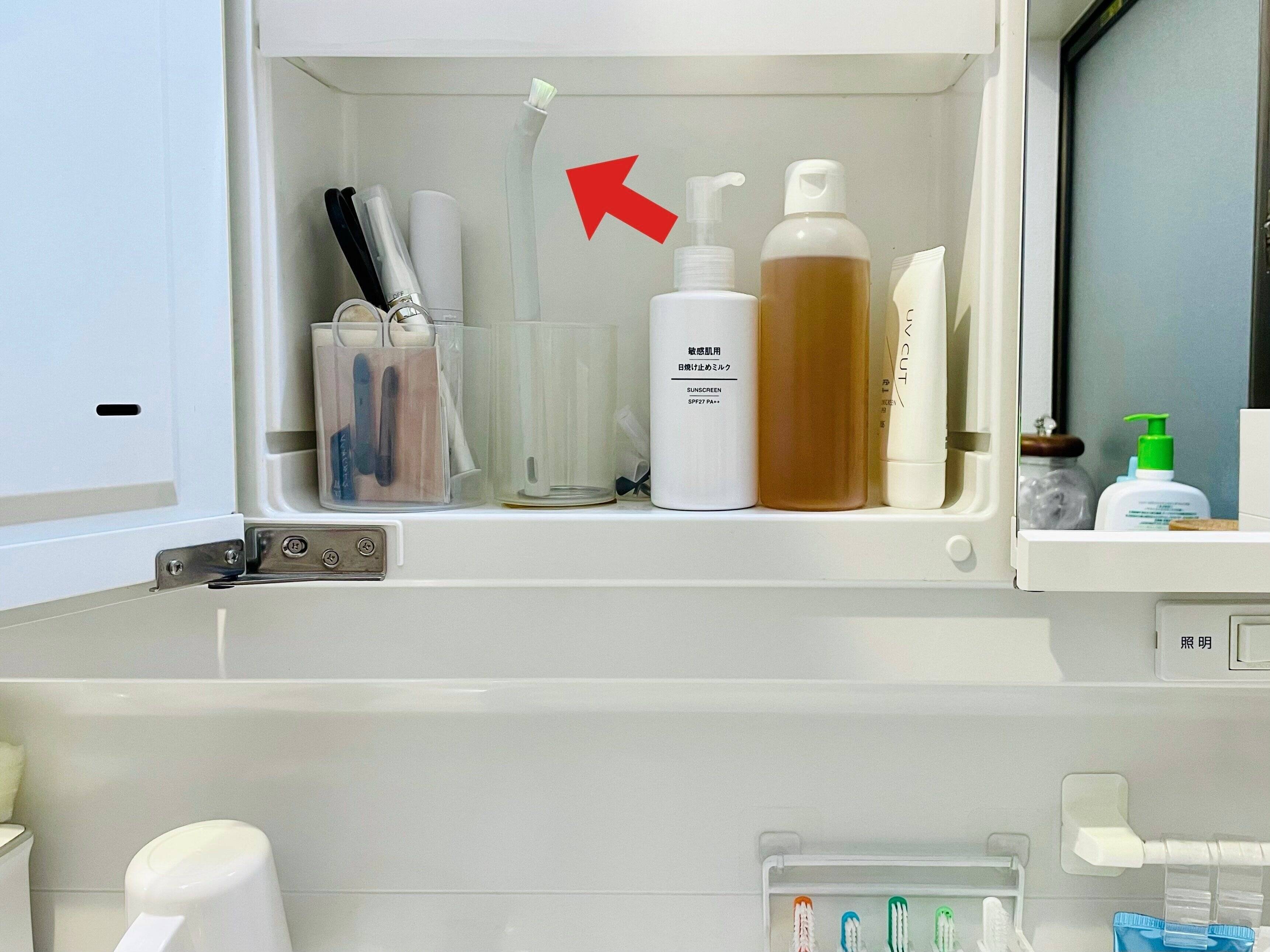 収納場所は、洗面台の鏡裏。子どもの手が届く、1番下の段に置いています。