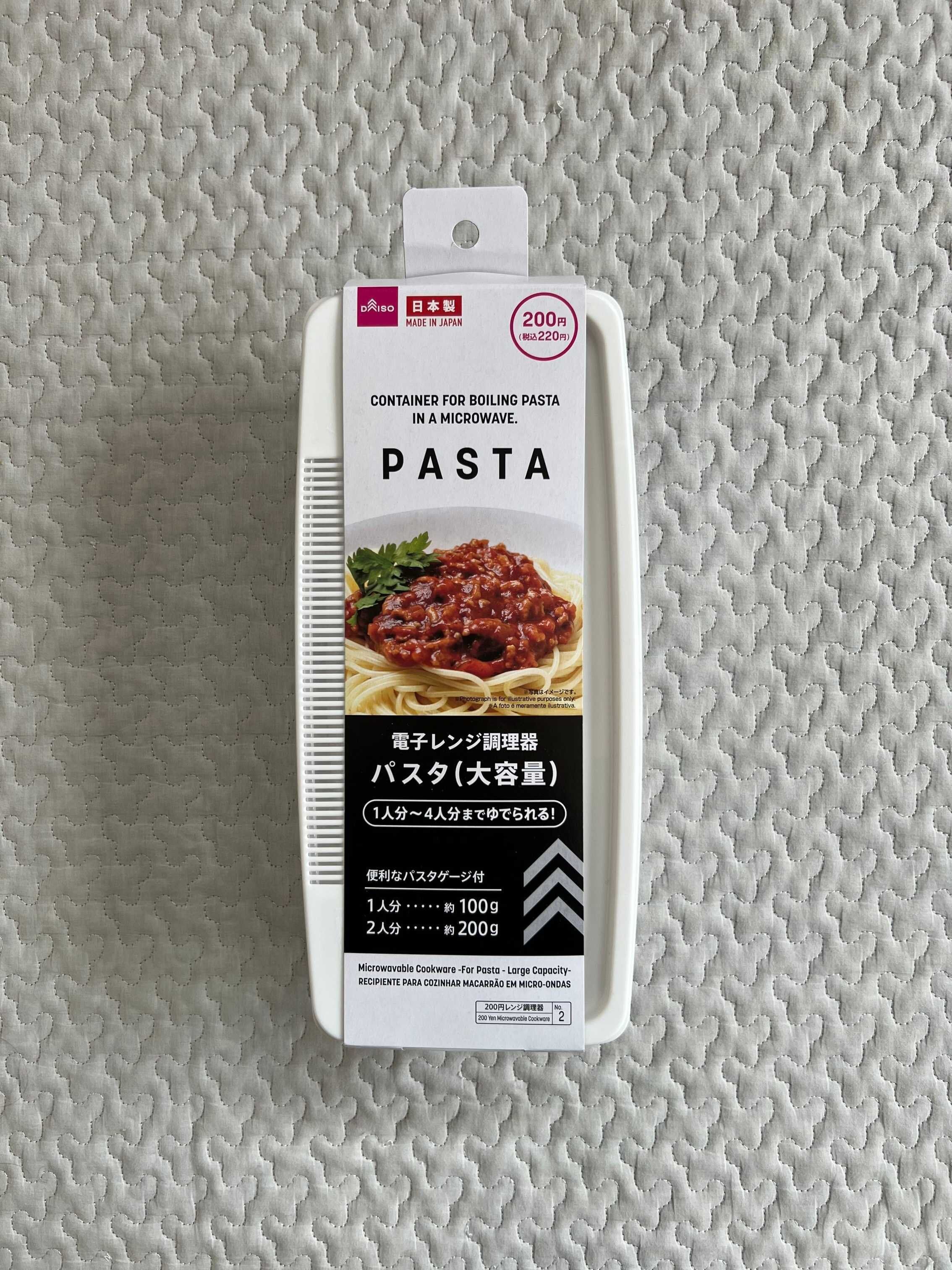 こちら、ダイソーの220円商品で、電子レンジでパスタがゆでられるアイテムです。