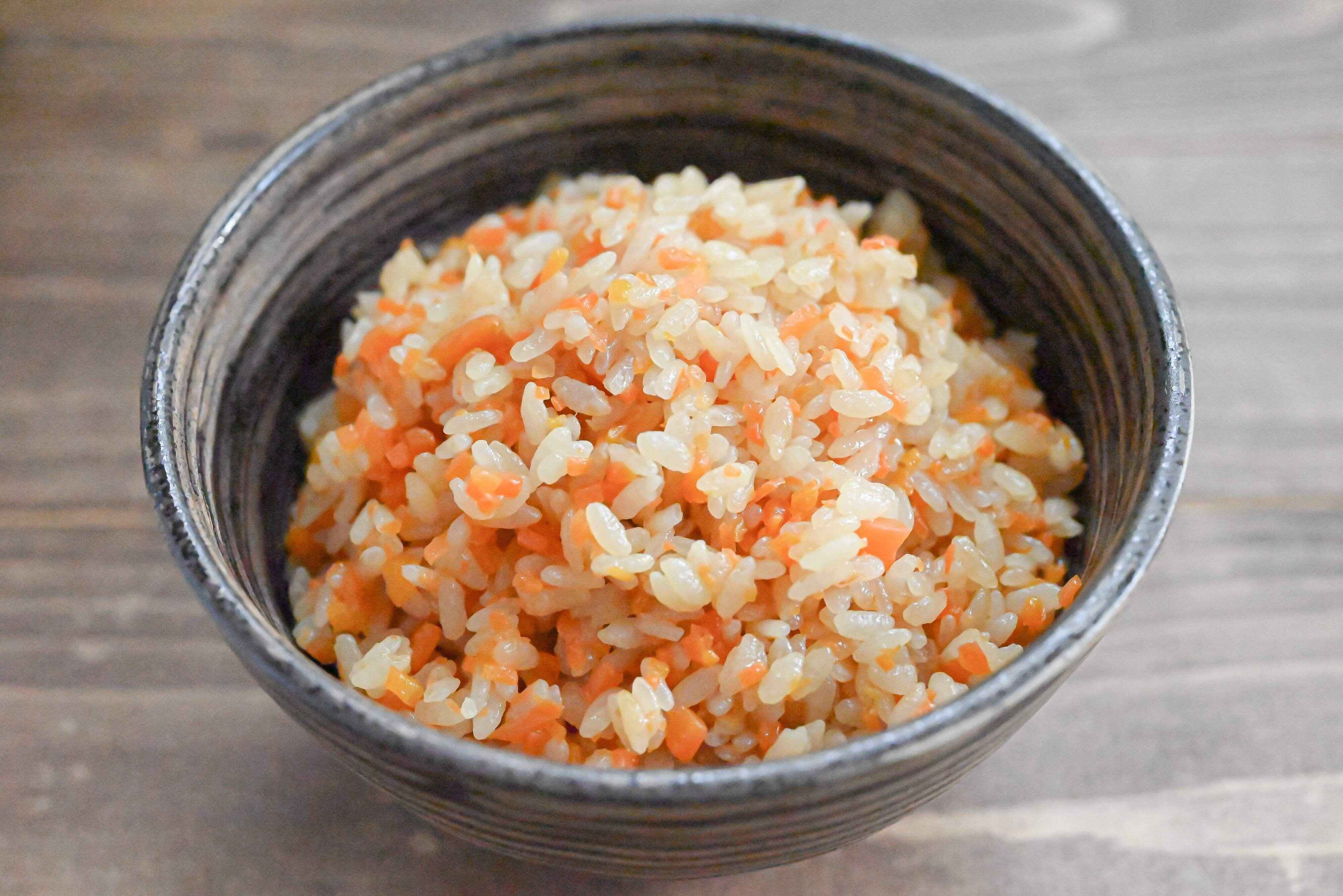 にんじんの甘みがごはんにまで染み込み、甘味たっぷりに仕上がります。