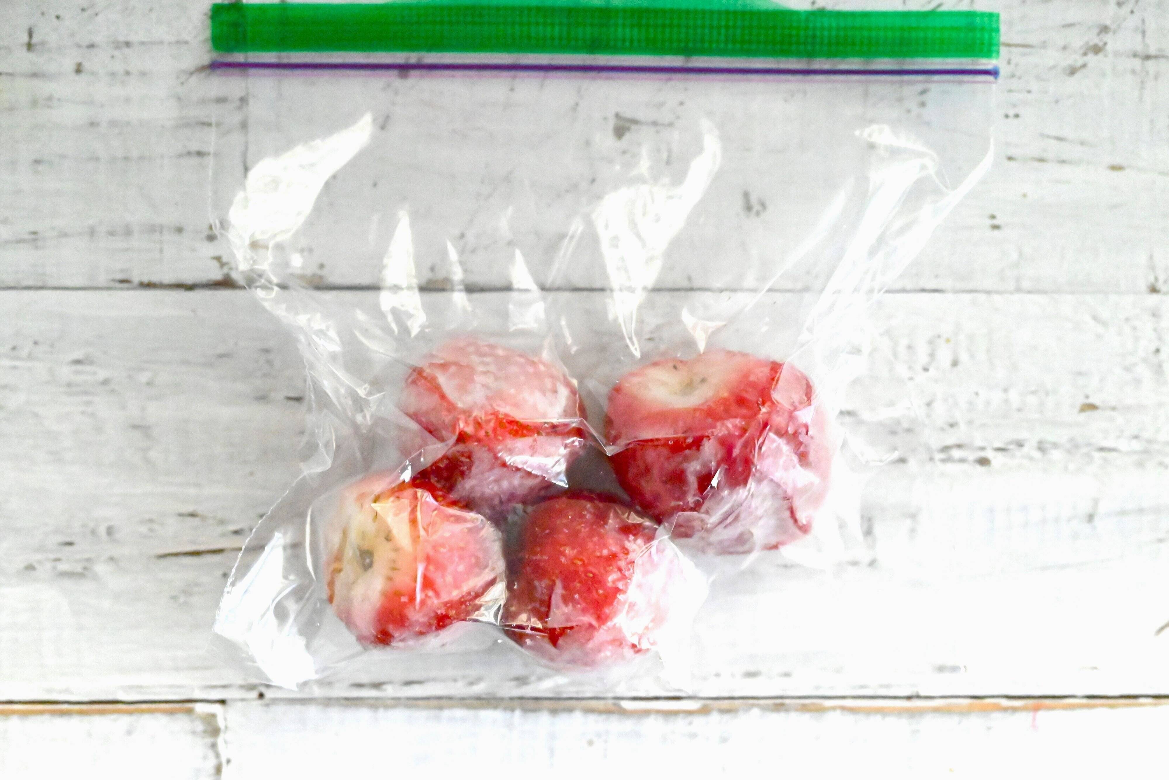 ヘタをとって水で洗い、水気を拭いたら全体に砂糖をまぶし、冷凍できる保存袋に入れるだけ!