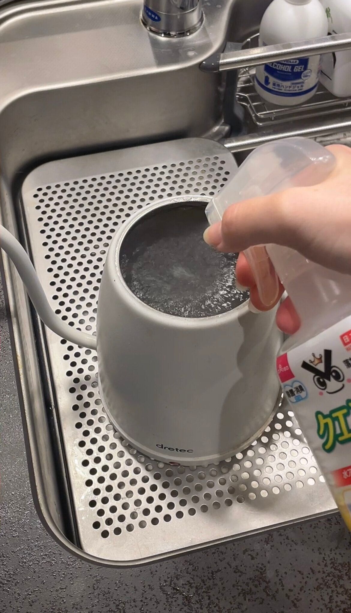 放置するだけでケトルの水垢がなくなり、ピカピカに♪
