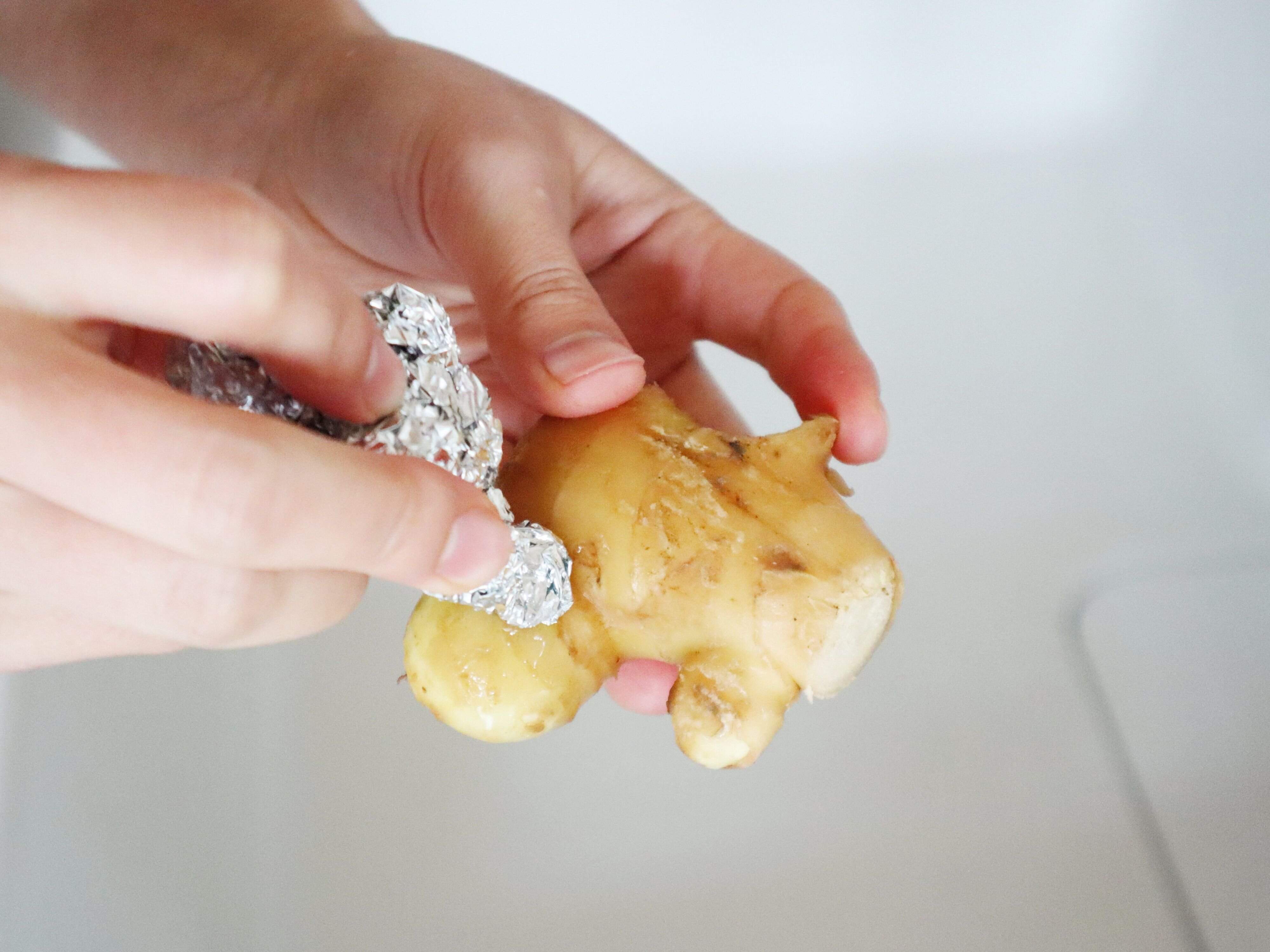 しょうがは皮ごと使える野菜ですが、気になるかたはアルミホイルで少し強めにこすれば皮もむくことができますよ。