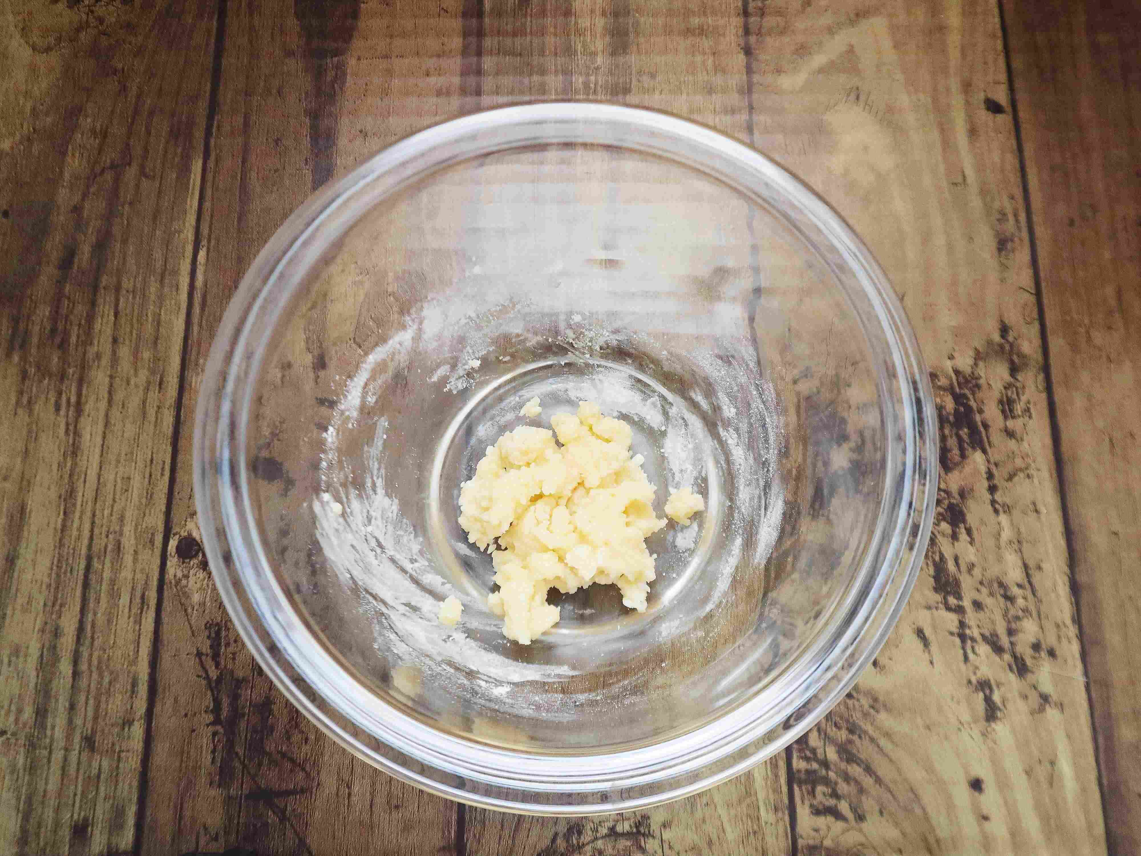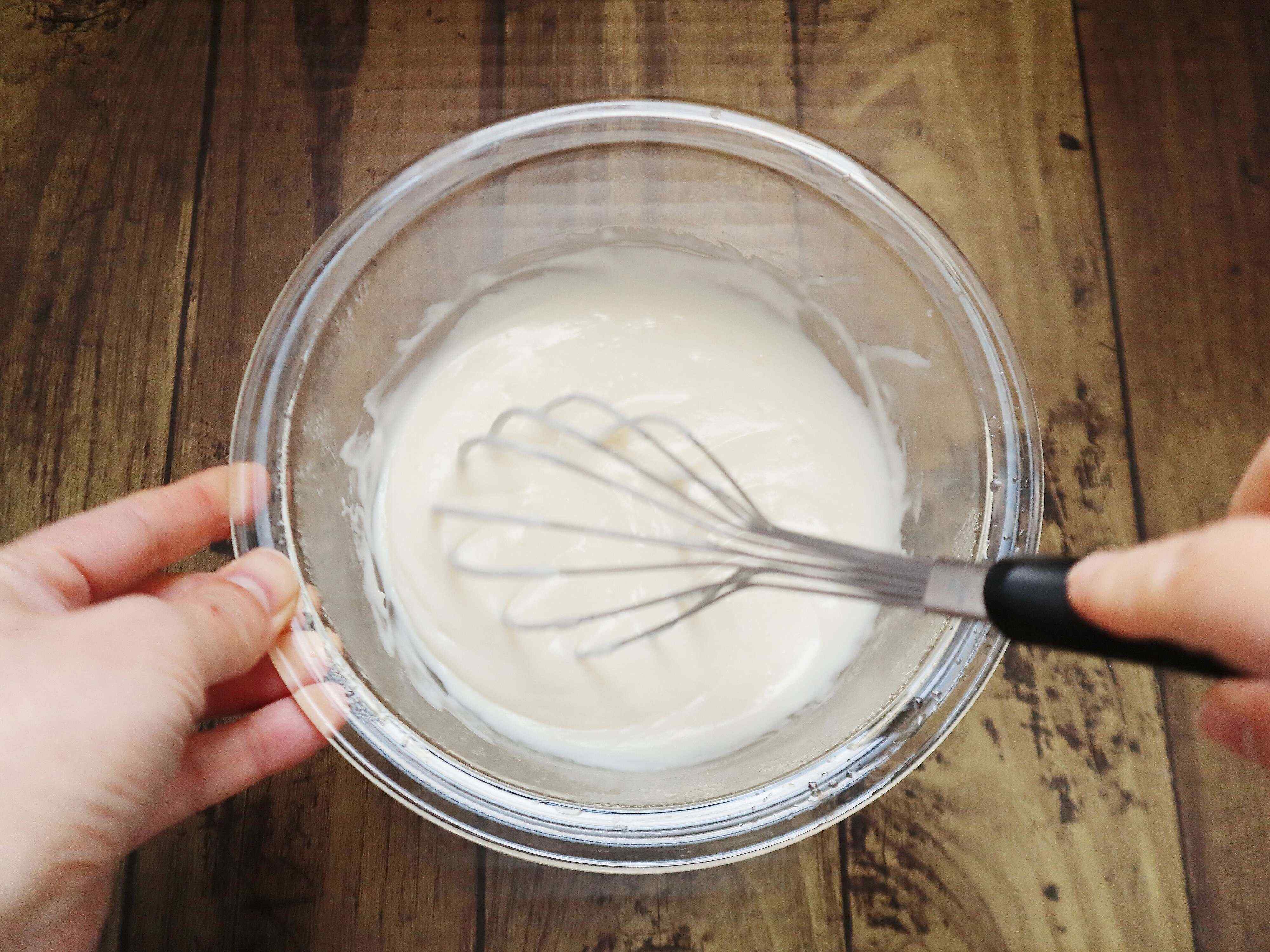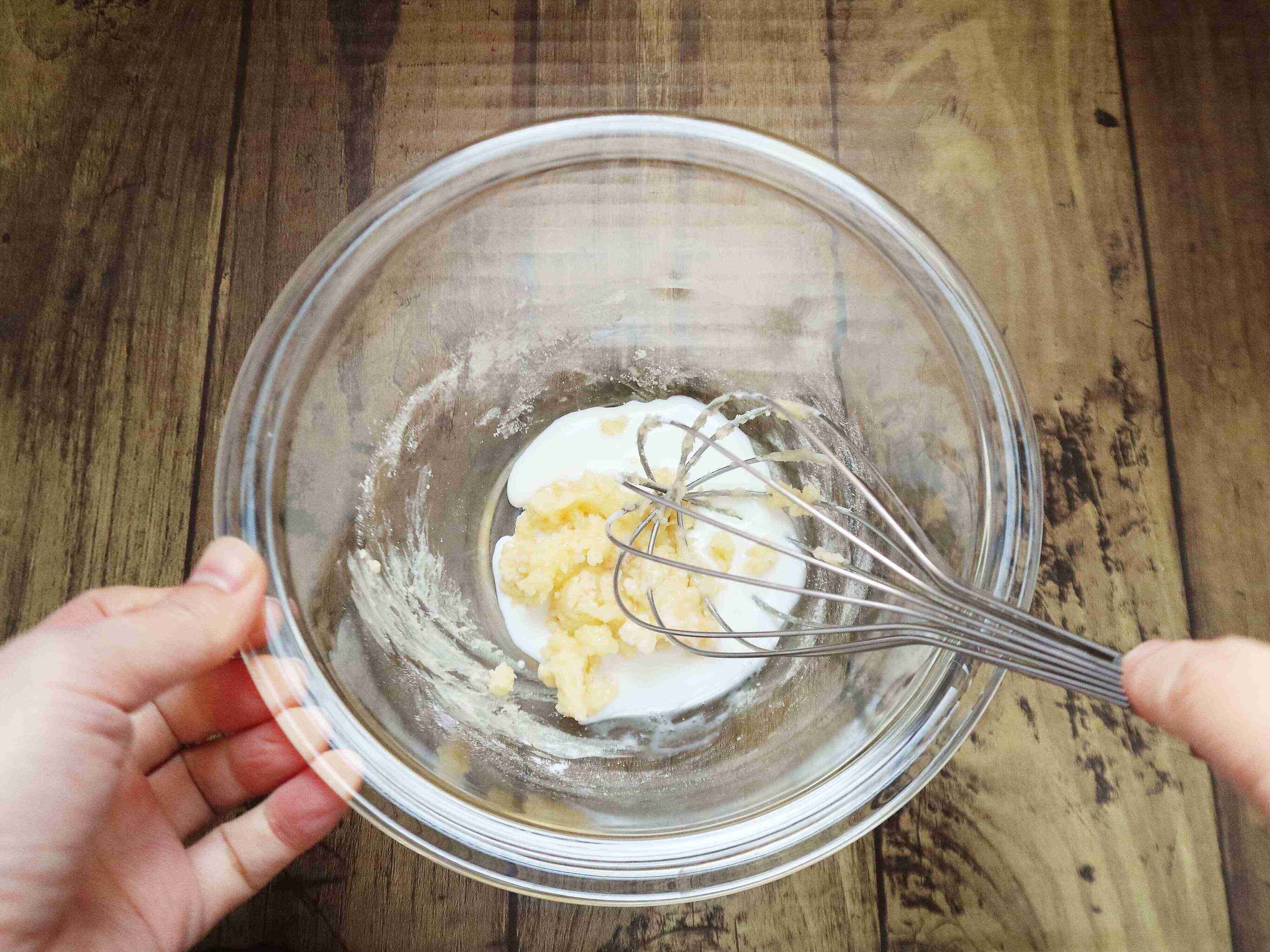 (2) 粉っぽさがなくなるまで混ぜる。