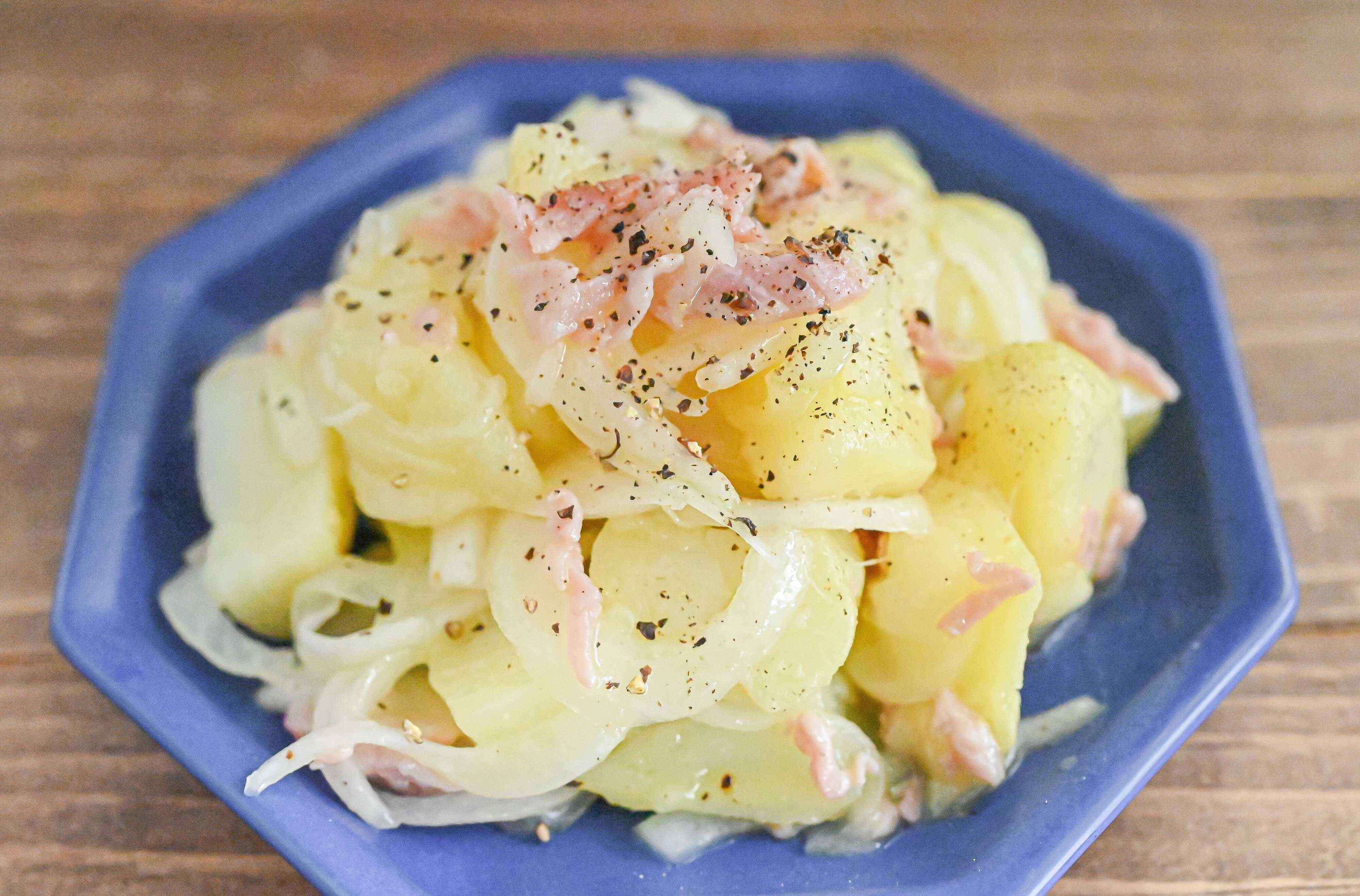 生ハムとバターの塩気がじゃがいもと新玉ねぎを引き立ててくれますよ。