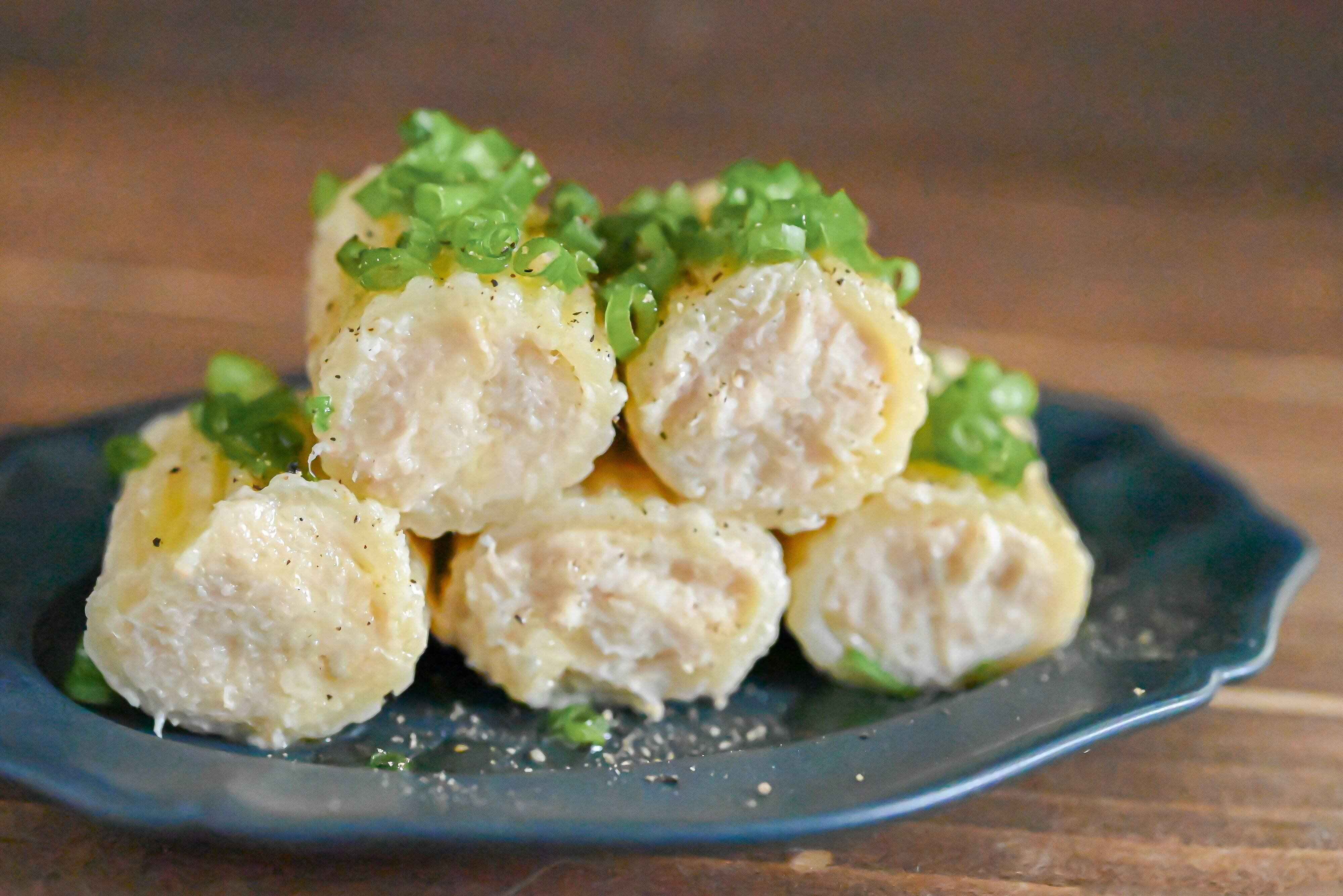 皿に盛り、小口切りにした小ねぎ、粗挽き黒こしょうをかけて完成。
