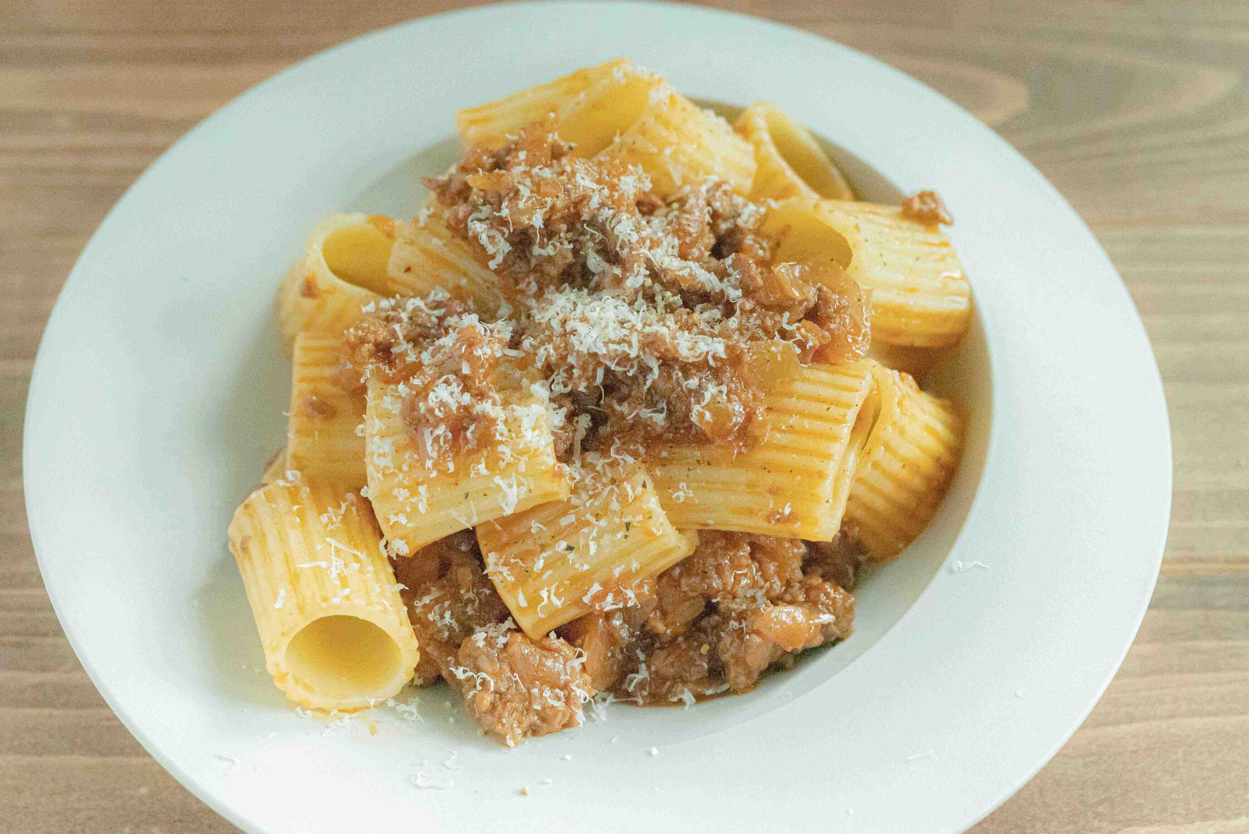 煮込まず簡単♪パッケリの簡単ミートソースがけ