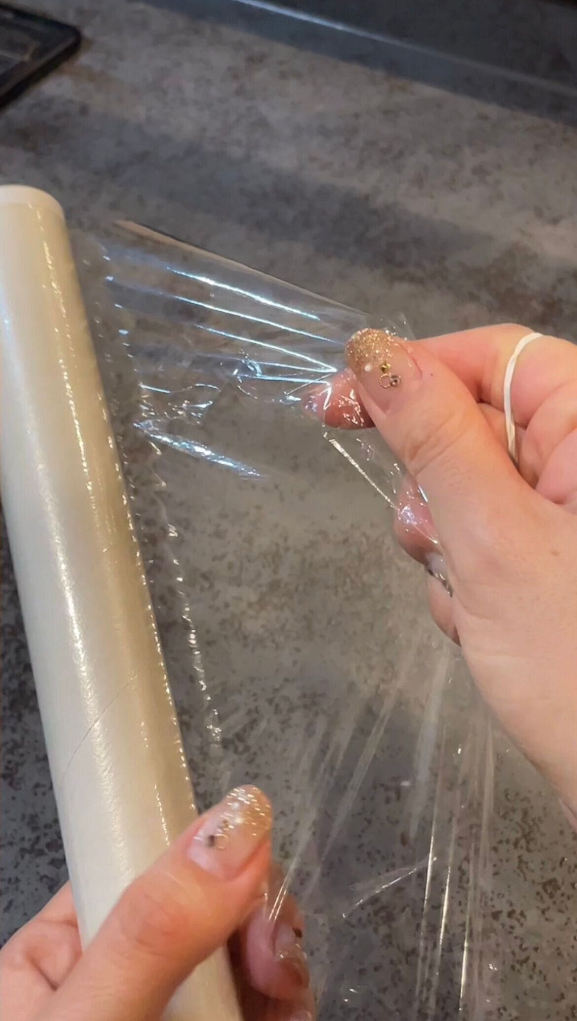 しばらくラップを擦っていくと、段々と輪ゴムに絡みついて端っこが浮かび上がってきます。