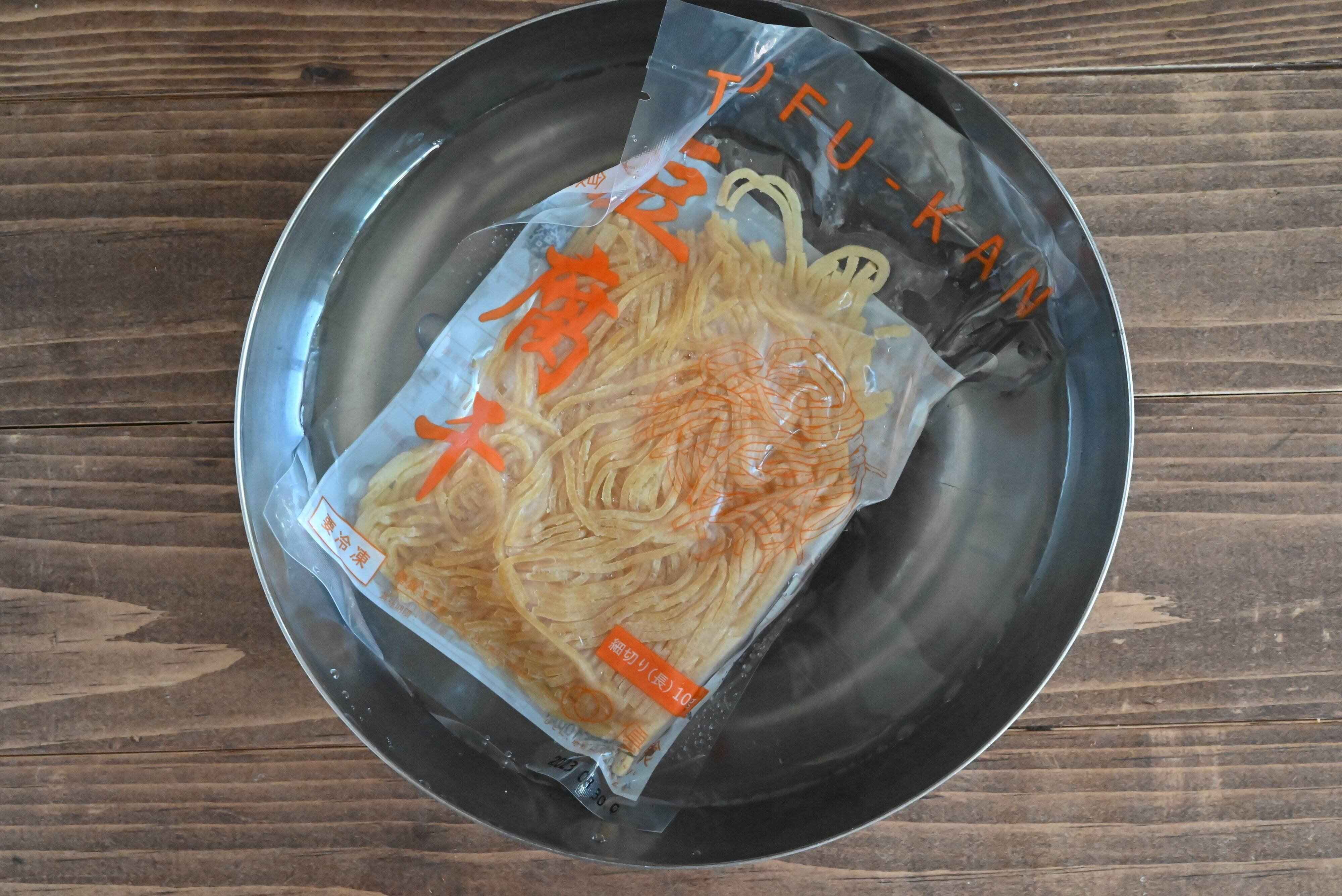 解凍した豆腐干はたっぷりの湯で5分程茹でてください。