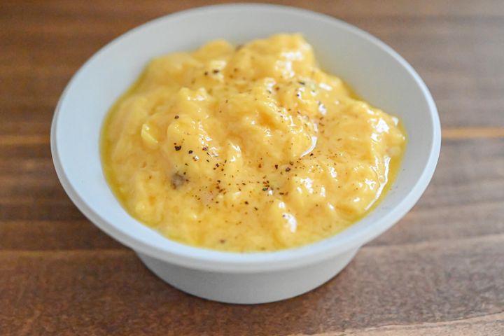 半熟状態で火から上げ、パンを合わせればホテルの朝食に出てくるようなひと品になりますよ。
