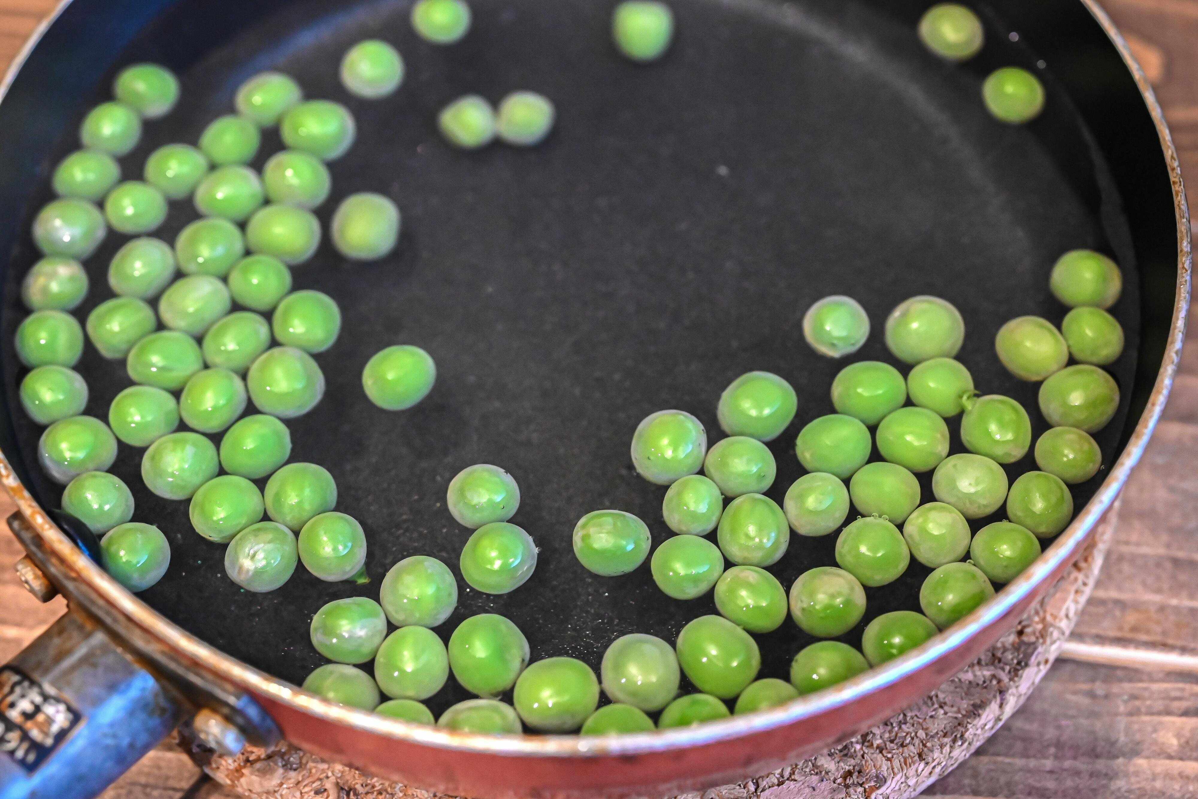 こうすることで、グリーンピースがシワシワにならず、
