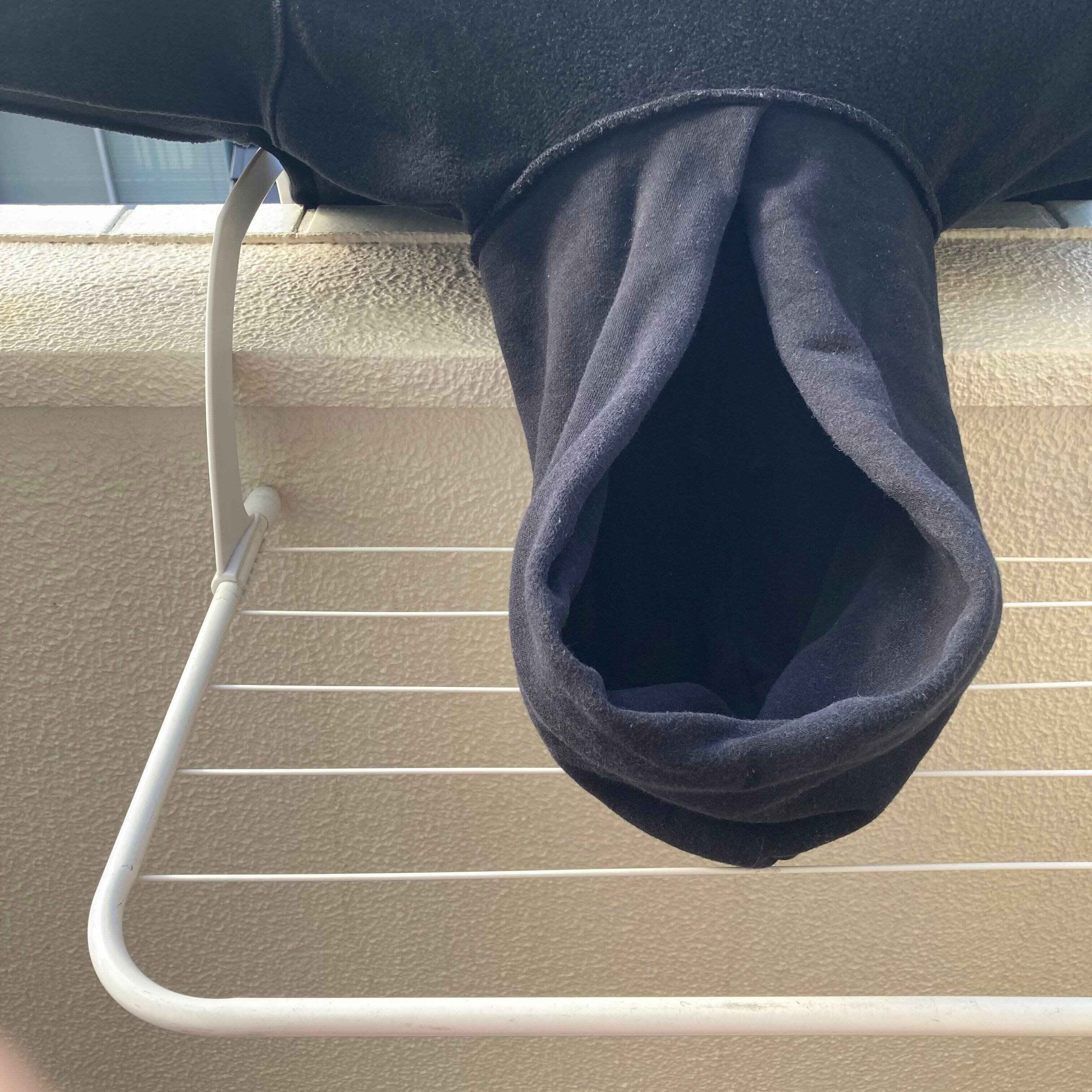 洗濯物が乾かなくてイライラしていた時に思いついたこの方法で干すようになって、カラッと乾いて助かっています。