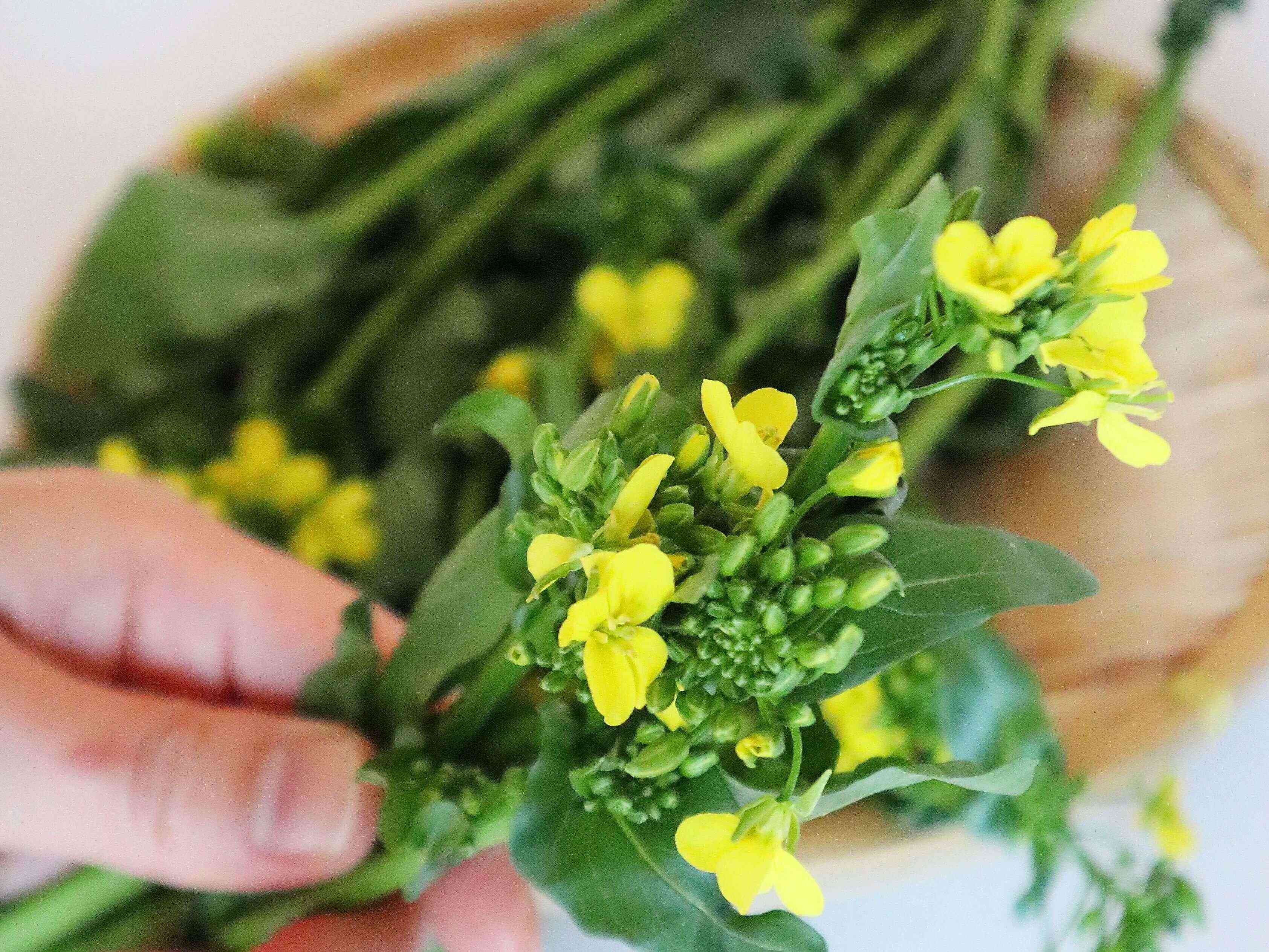 一般的に菜花として流通しているものは、油菜を品種改良されてできたものとされていて、菜花用として栽培されたものがスーパーに売られているんですよ。