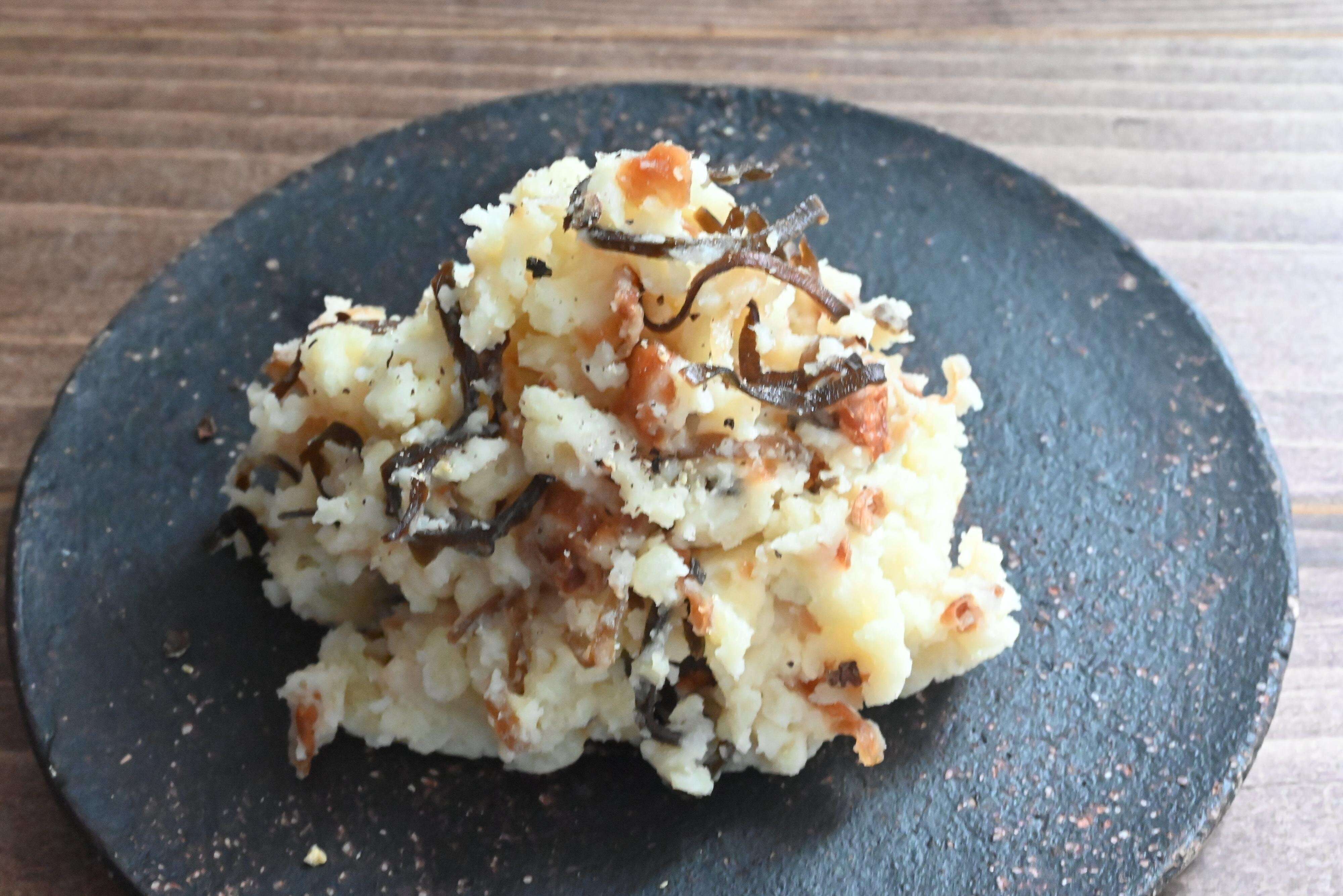 フライドオニオン、クリームチーズ、塩昆布をポテサラに入れて、