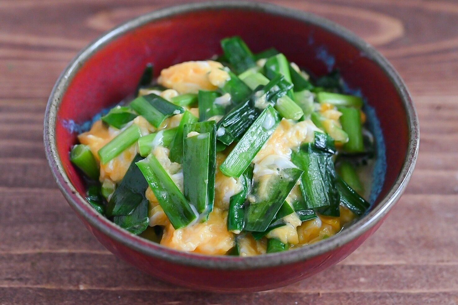 定番料理「にらたま」に鶏油を合わせるレシピです。