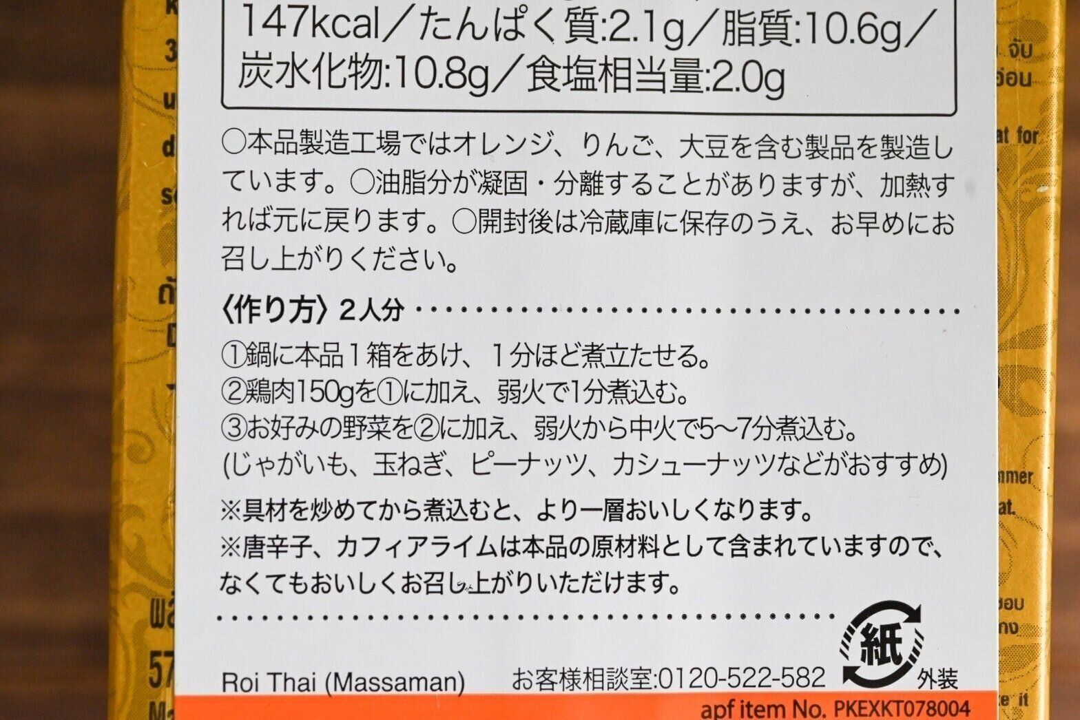 カルディで販売されているマサマンカレーを自宅で手軽に味わえる商品がコチラ。