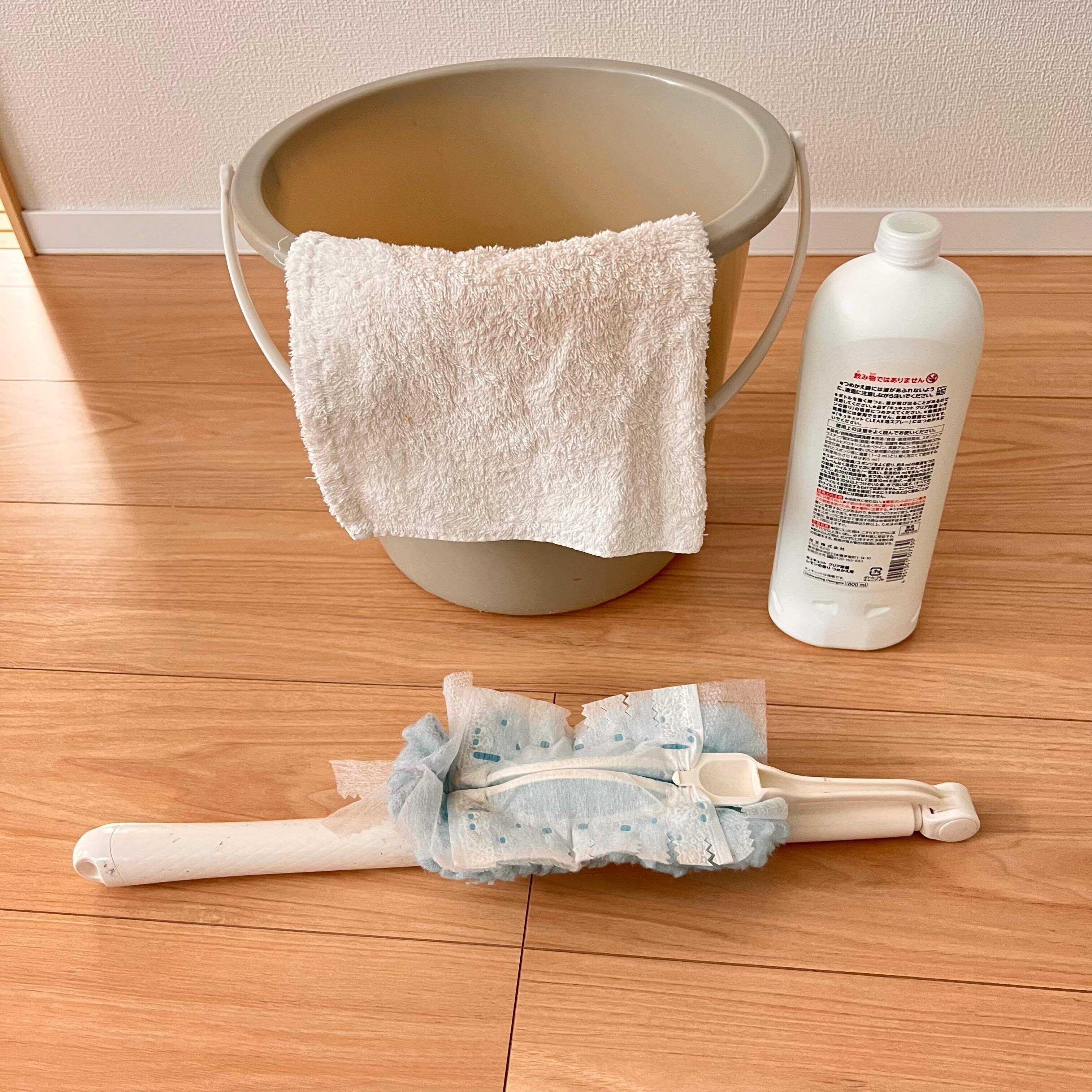 用意するものはホコリ取り、雑巾、バケツ、必要であれば洗剤(食器用洗剤でOK)。