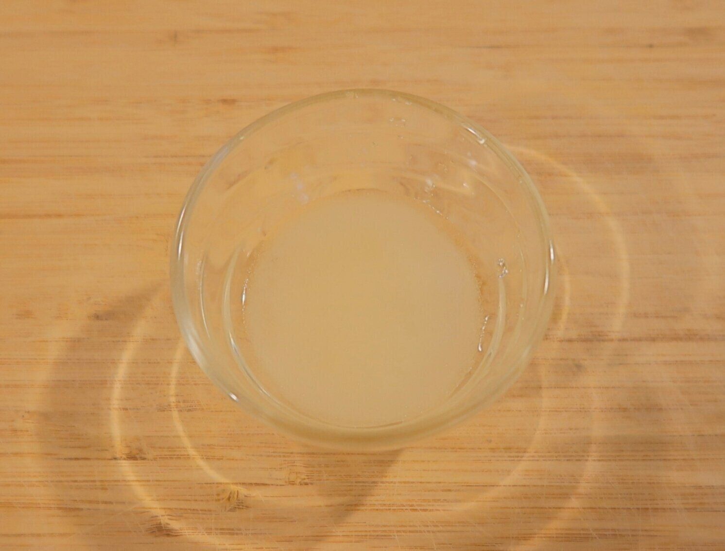 水(大さじ2)に粉ゼラチンをふり入れ、1分ほど置いてふやかします。