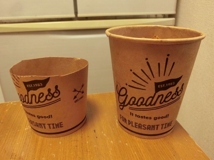 紙コップの高さがちょっと合わない。そんなときは紙コップをカットすると、ピッタリサイズにできます。