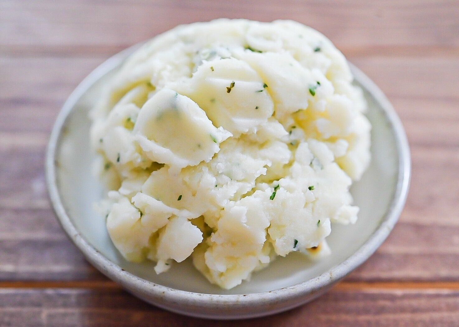 皮をむいて、牛乳大さじ2と合わせてマッシャーで潰し、