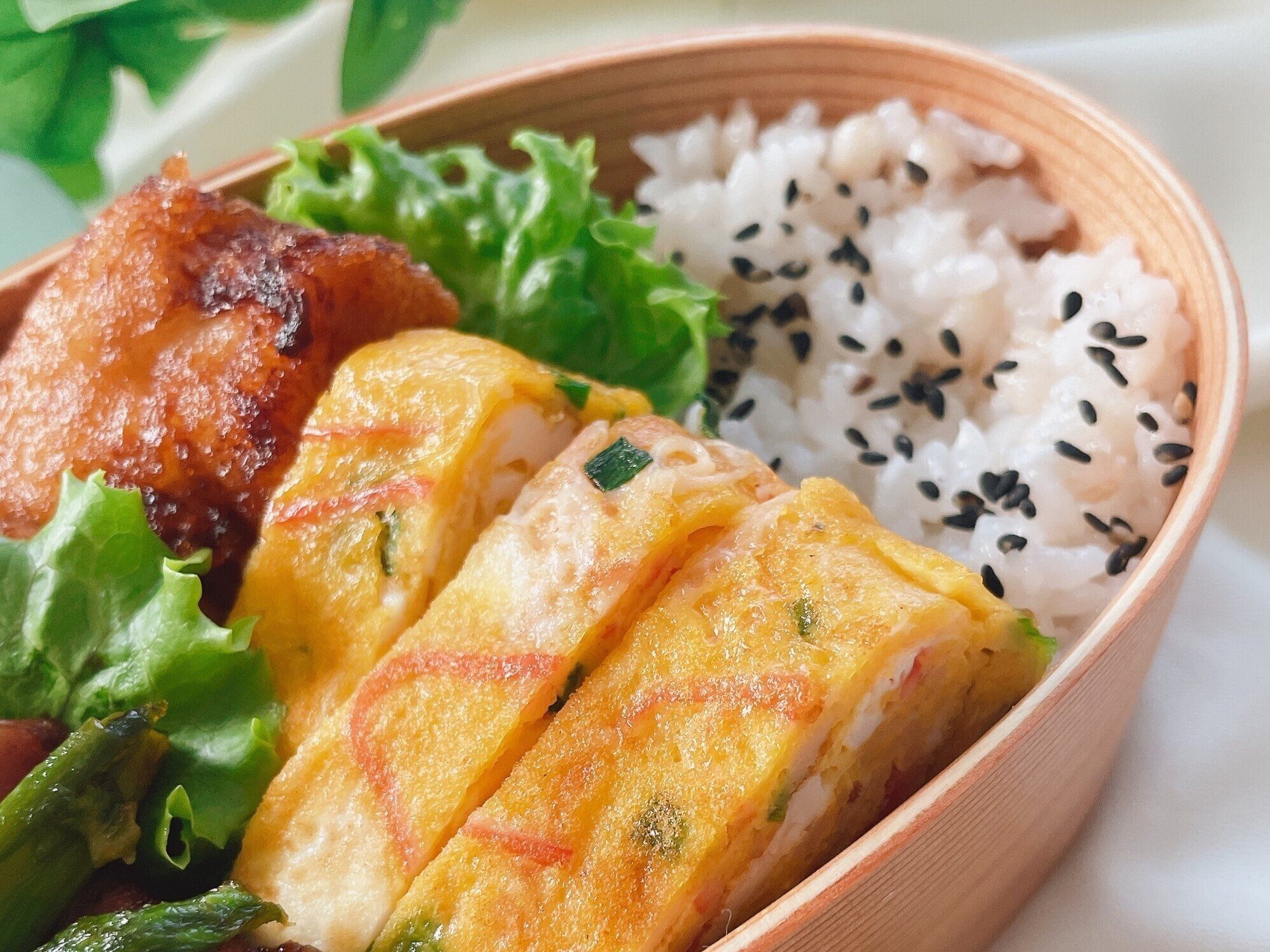 ※気温の高い時季はお弁当が傷みやすいので注意してください。気温25度以上の日には生野菜を避け、卵や練り物、肉・魚類にきちんと火を通すことをオススメします。