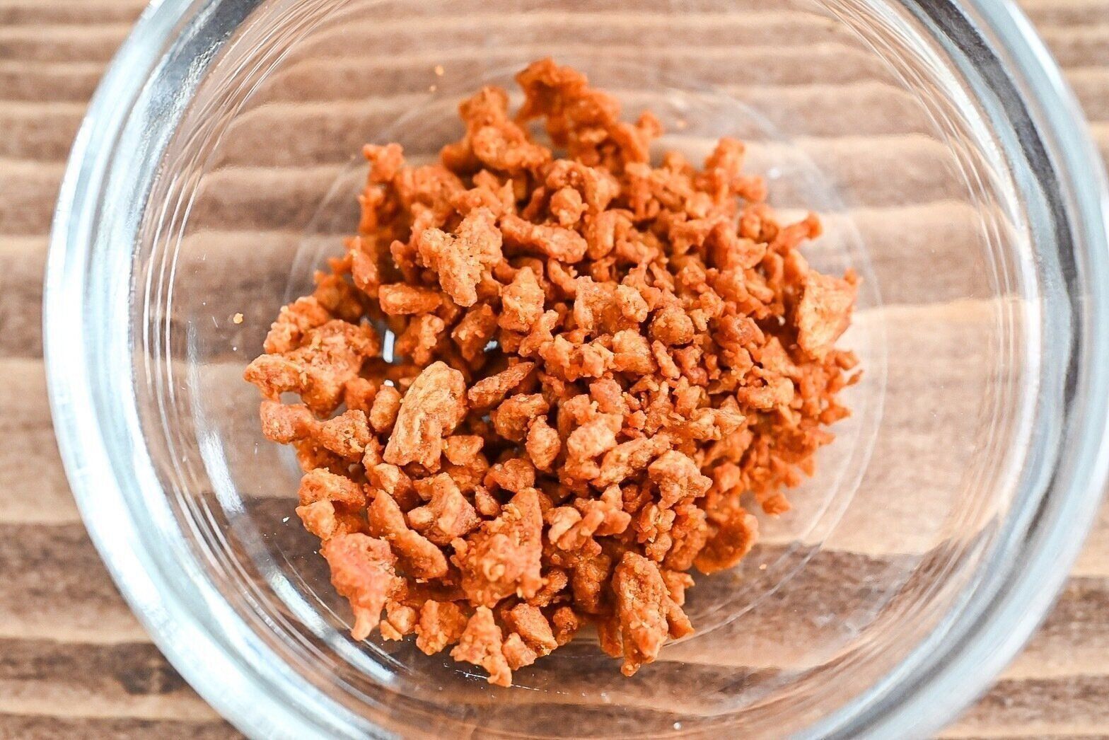 ベーコンの香ばしい風味と、カリカリとした独特の食感を大豆たんぱくで再現した商品です。