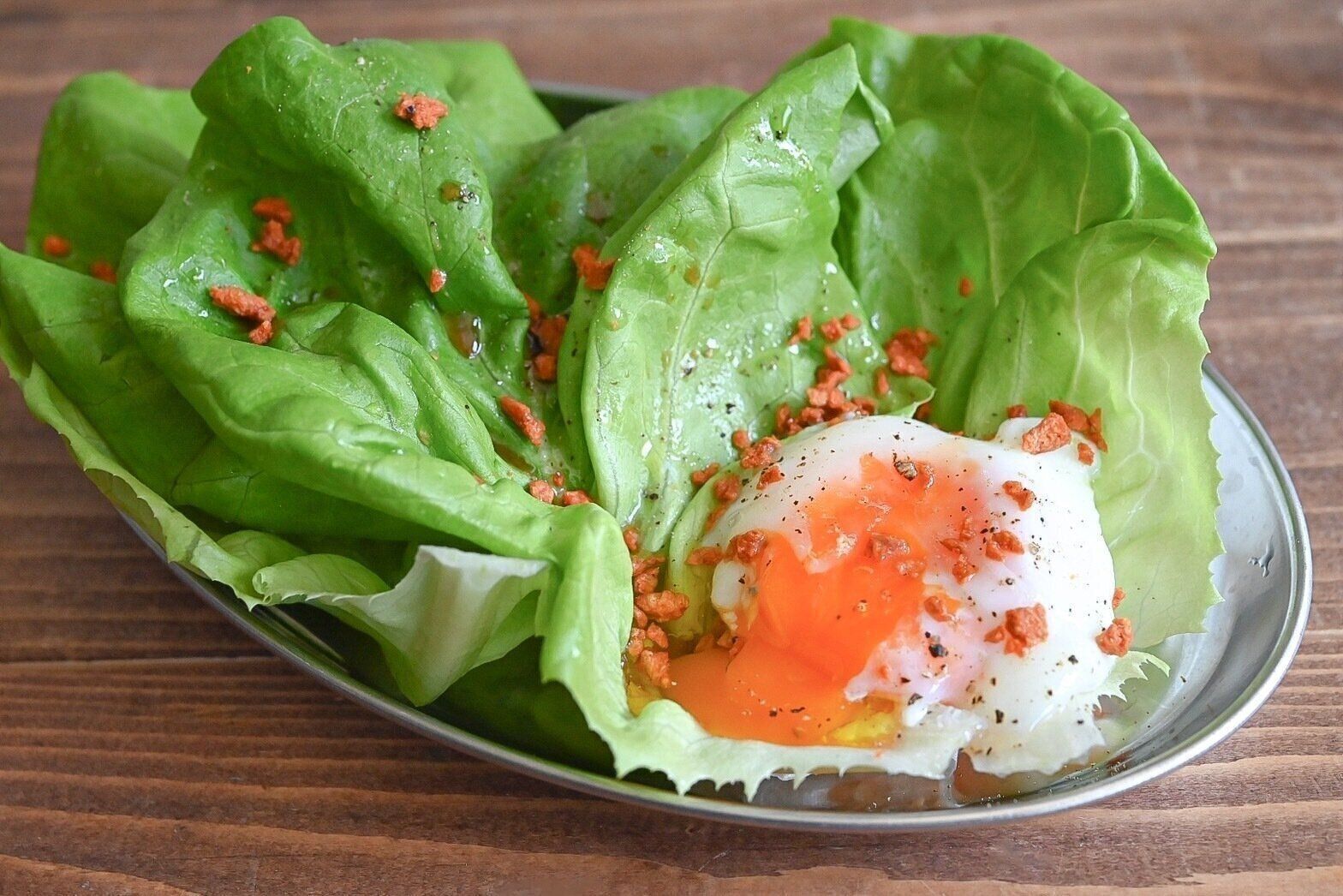 黄身がソース代わり♪サラダ菜のポーチドエッグ添え