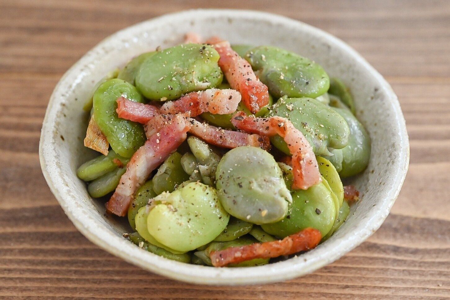 ベーコンのうま味がそら豆と合わさり、箸が止まらないひと皿になりますよ。
