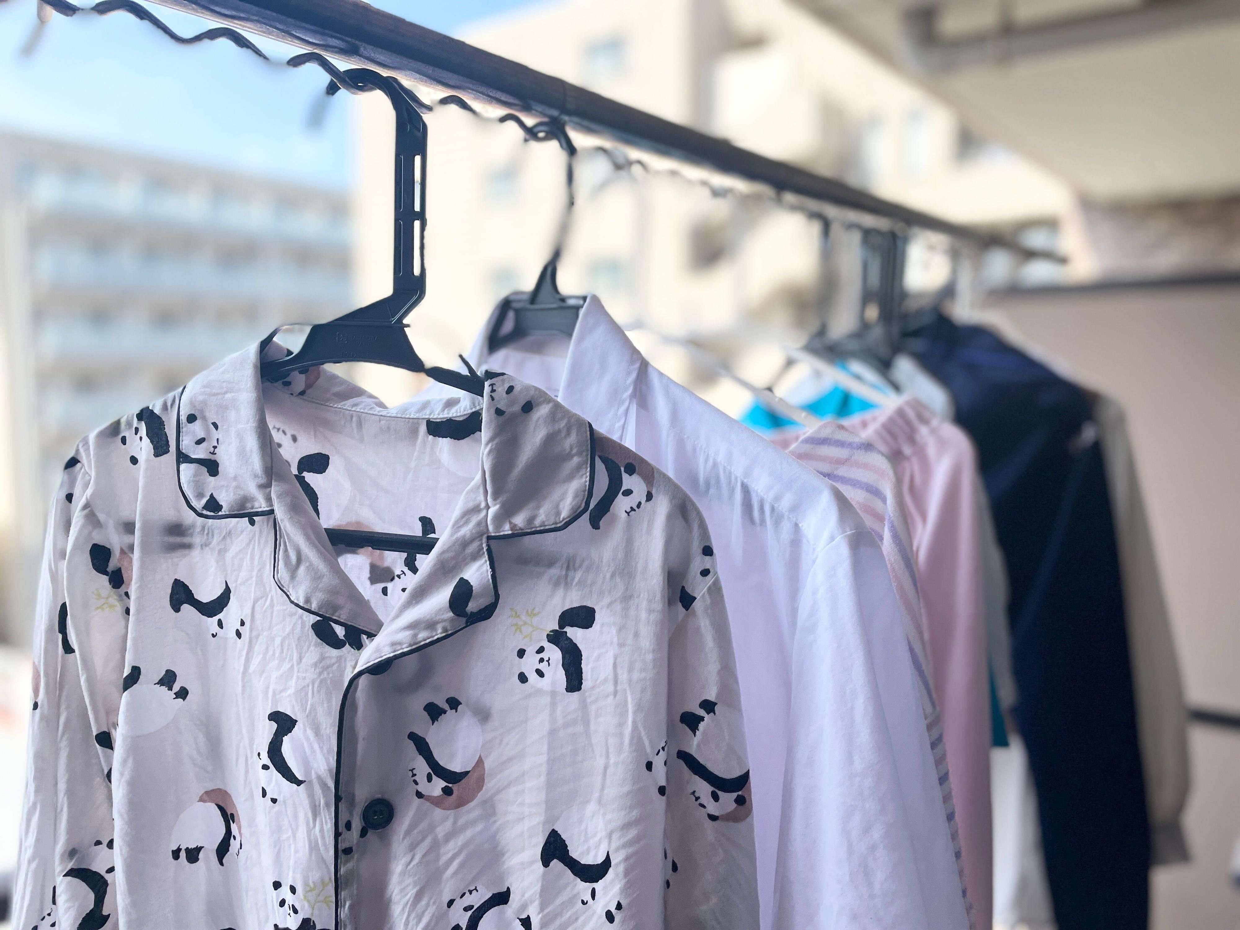 濡れた洗濯物の重みでシワが伸びるので、アイロンの手間が減らせますよ。普段着ならば、それでだいたい大丈夫です。