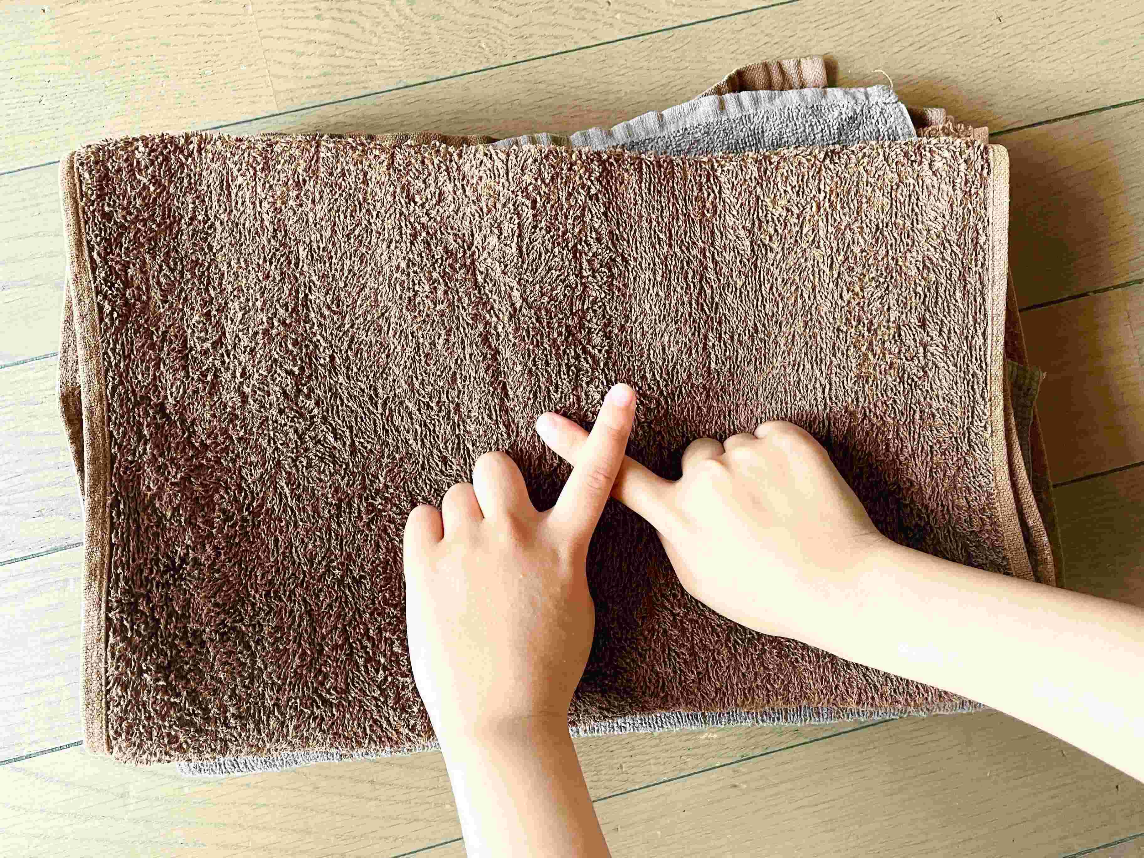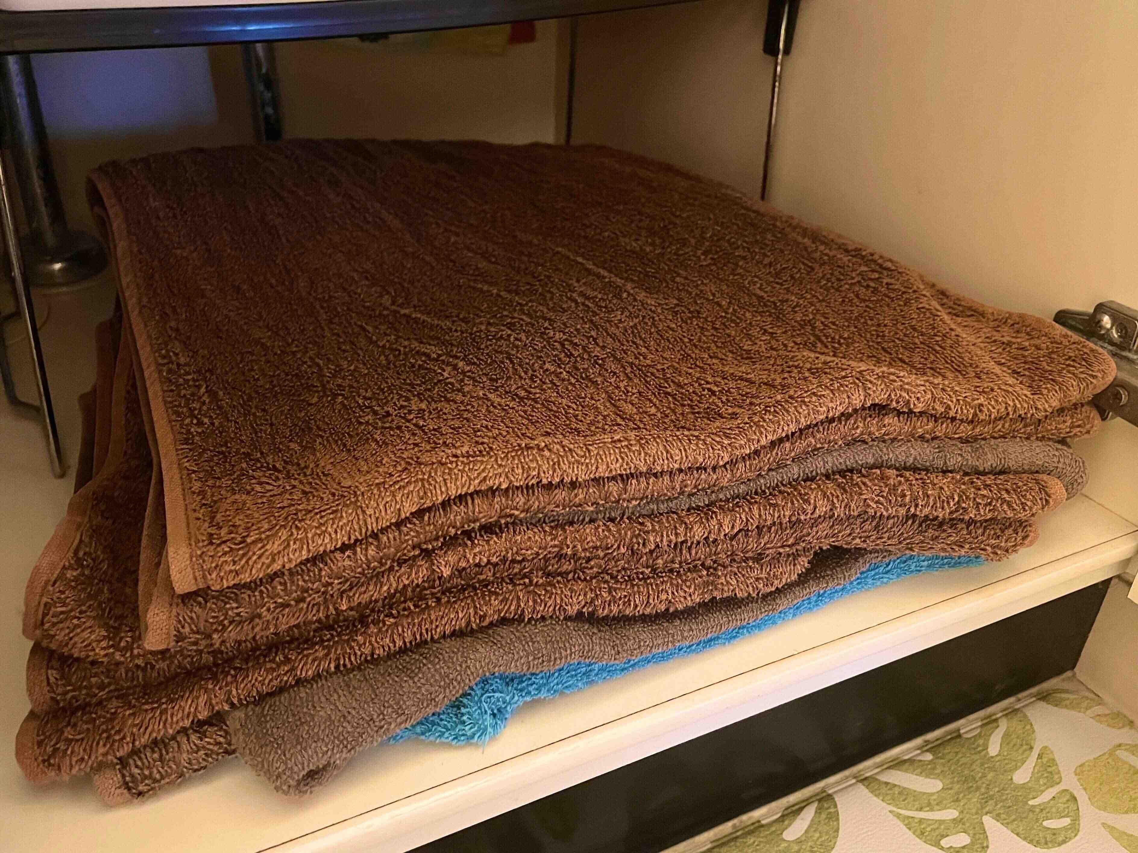 タオルは、二つ折りにしながら取り込み、洗面台の下へそのまま入れています。