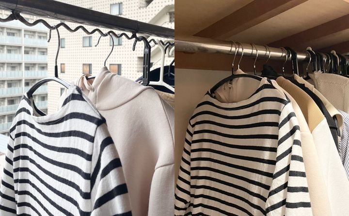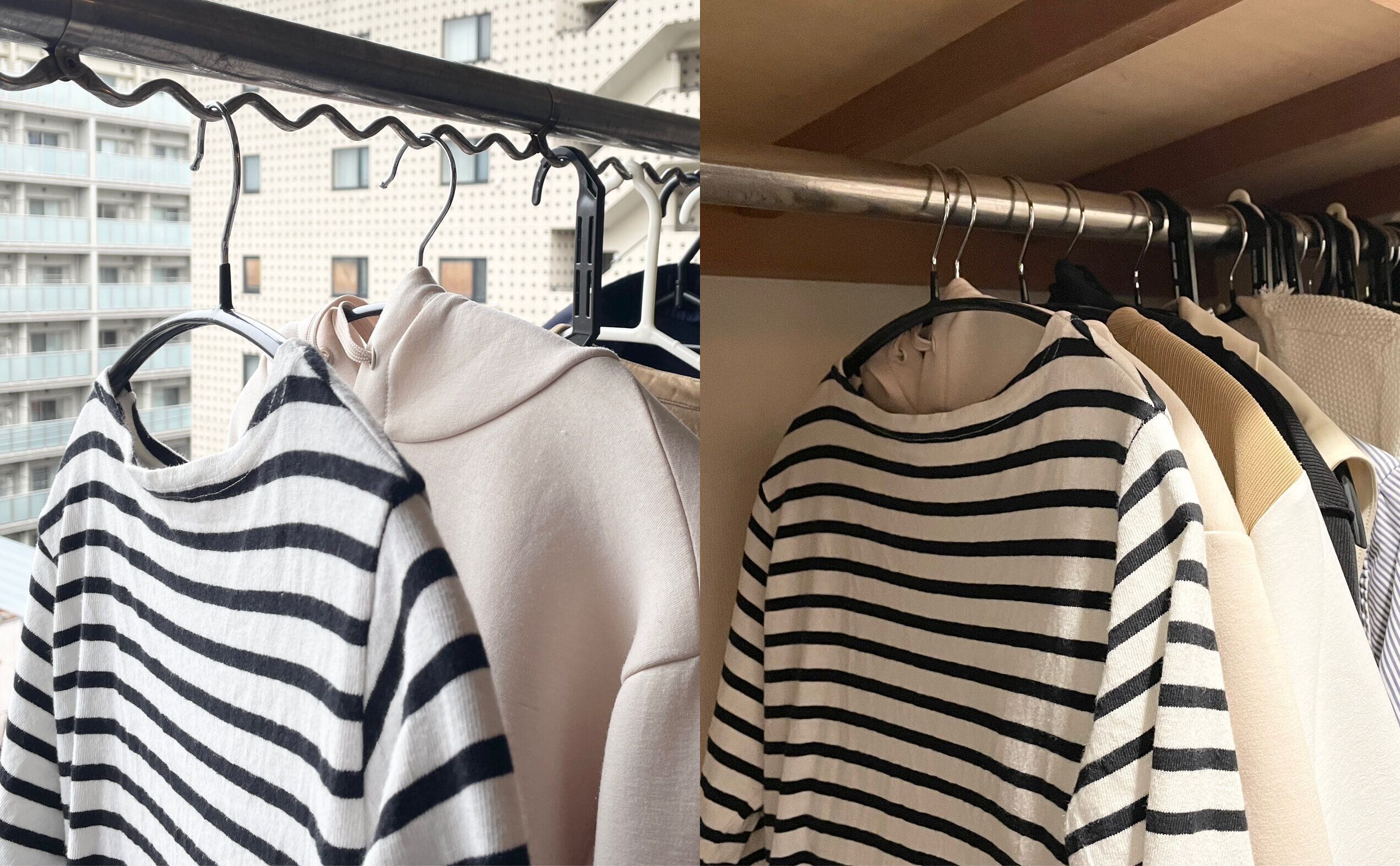 干すハンガーとしまうハンガーを同じにしてたたむ手間をなくす