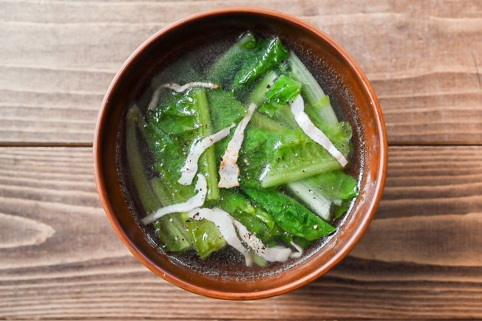 スープで!ロメインレタスとベーコンのスープ