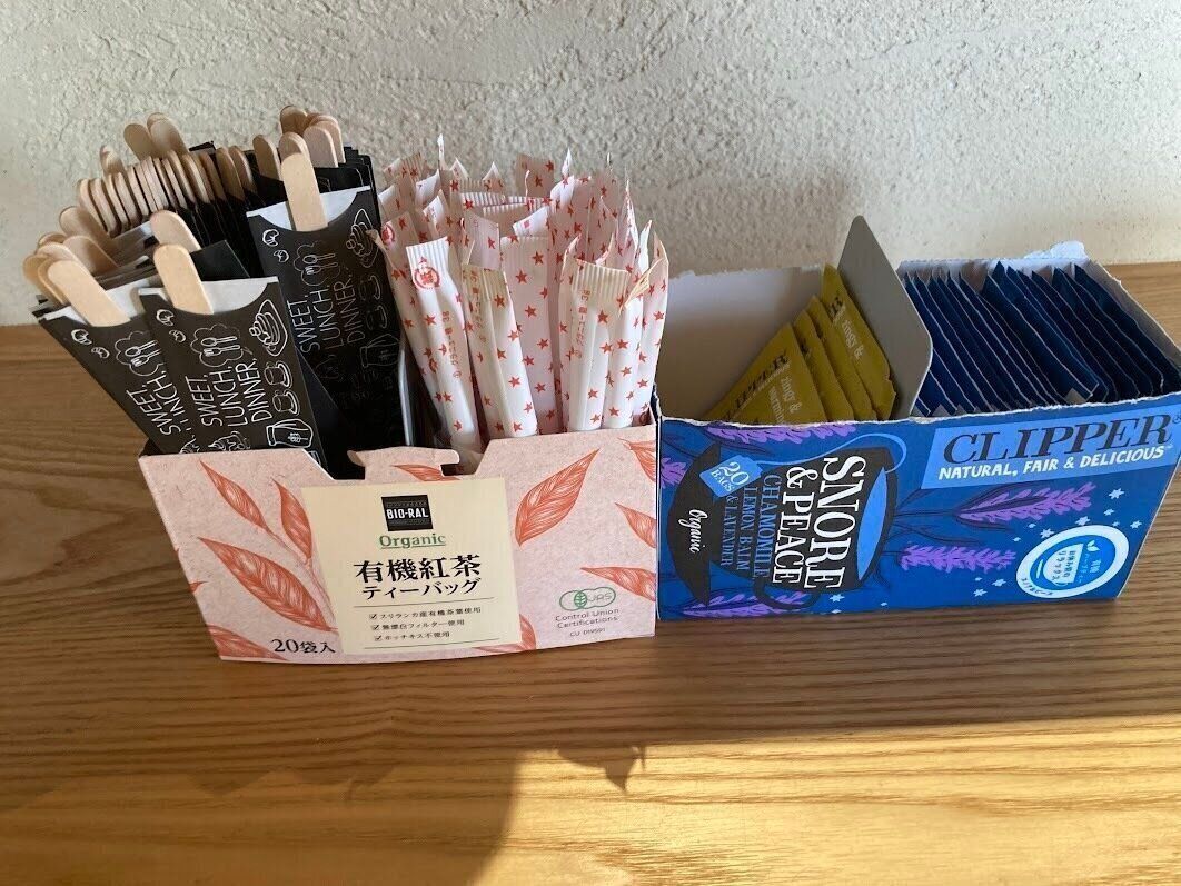 好みに合わせて、紅茶、コーヒー、ハーブティーなどを選んでいただけるようにしています。